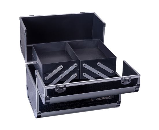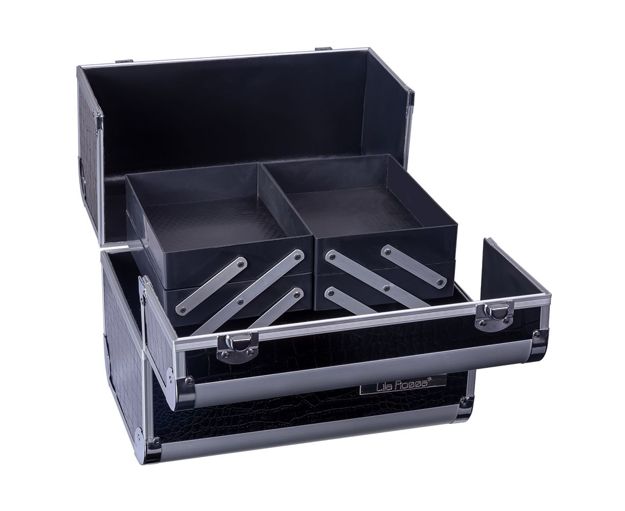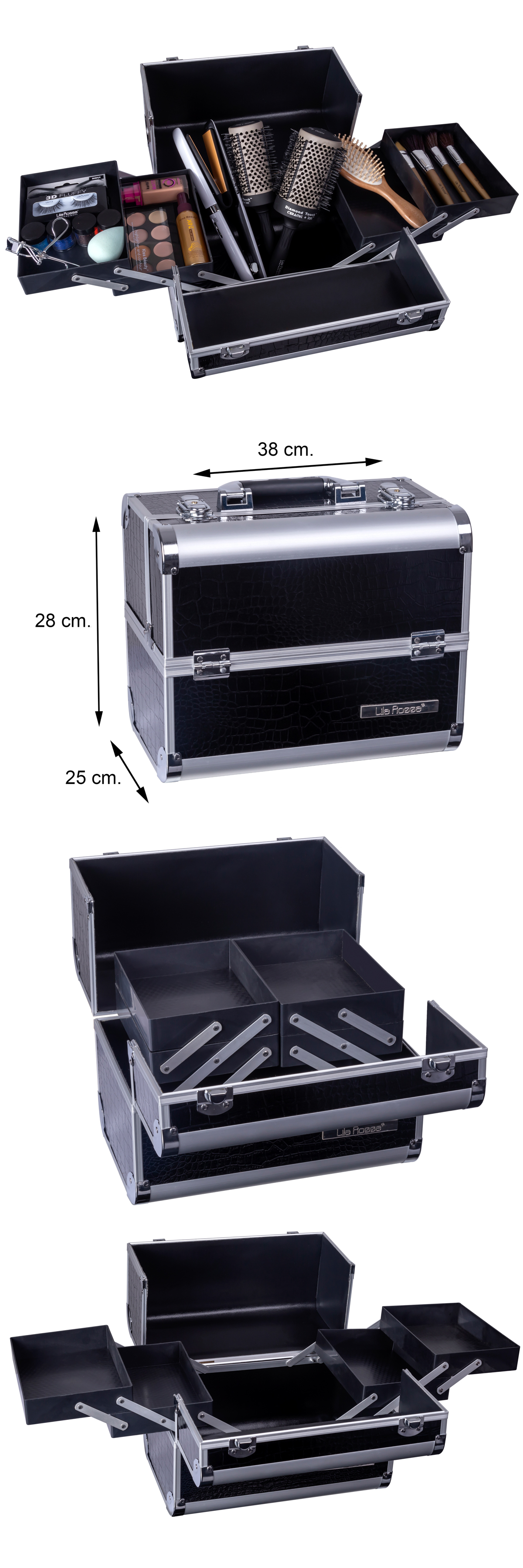 Козметична чанта за съхранение на грим и козметика, размер 38x25x28 см, Lila Rossa, черна кутия за гримове, куфар за грим