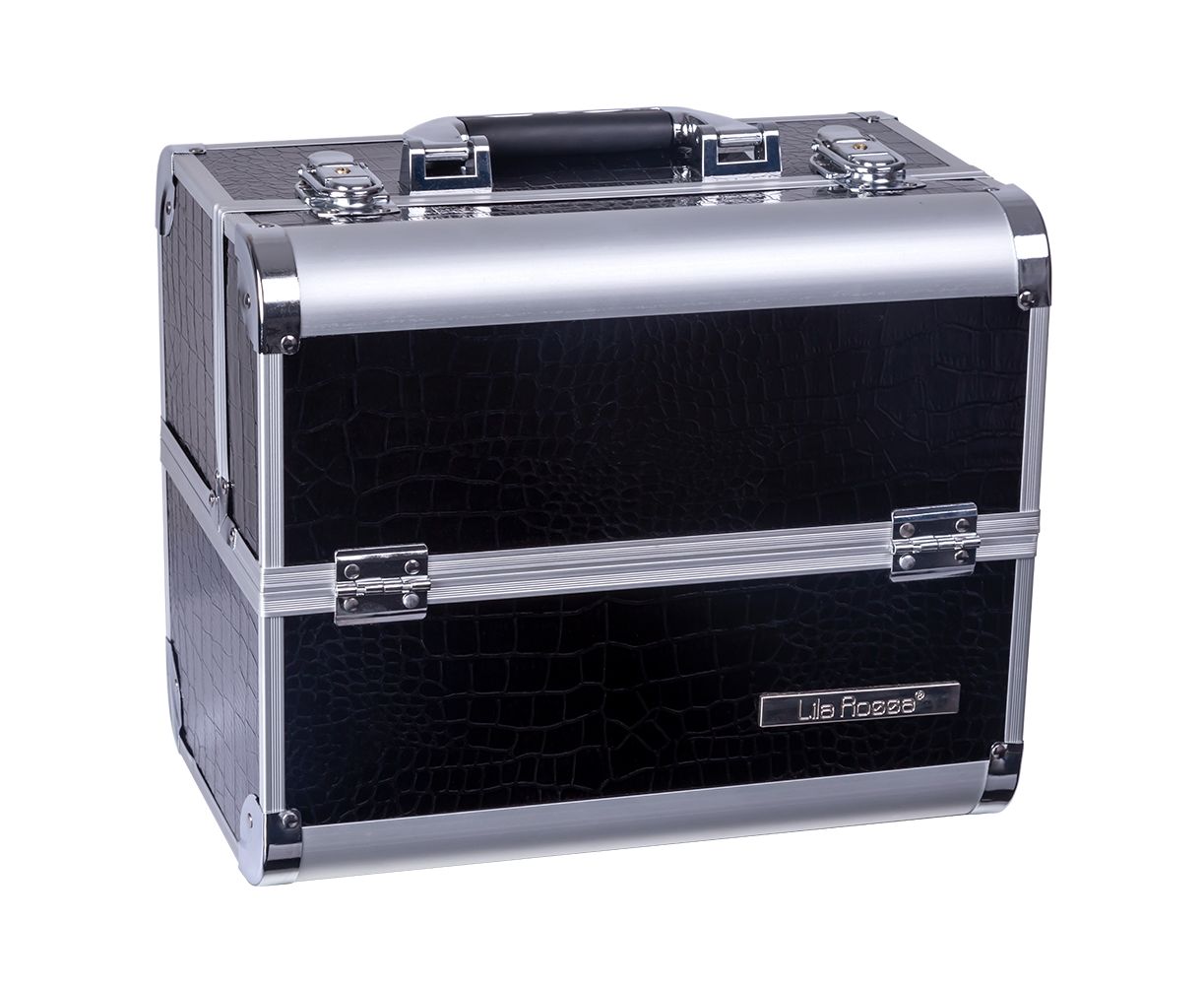 Чанта за гримове за козметика, Lila Rossa, голяма с капак и ключ, черна - 38x25x28 см