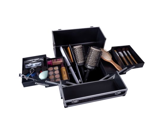 Чантата е разширяема, снабдена с 3 отделения отстрани и едно в средата, като има достатъчно място за съхранение дори на аксесоари за грим като аерограф, лампа за маникюр или сешоар и фризьорска преса.