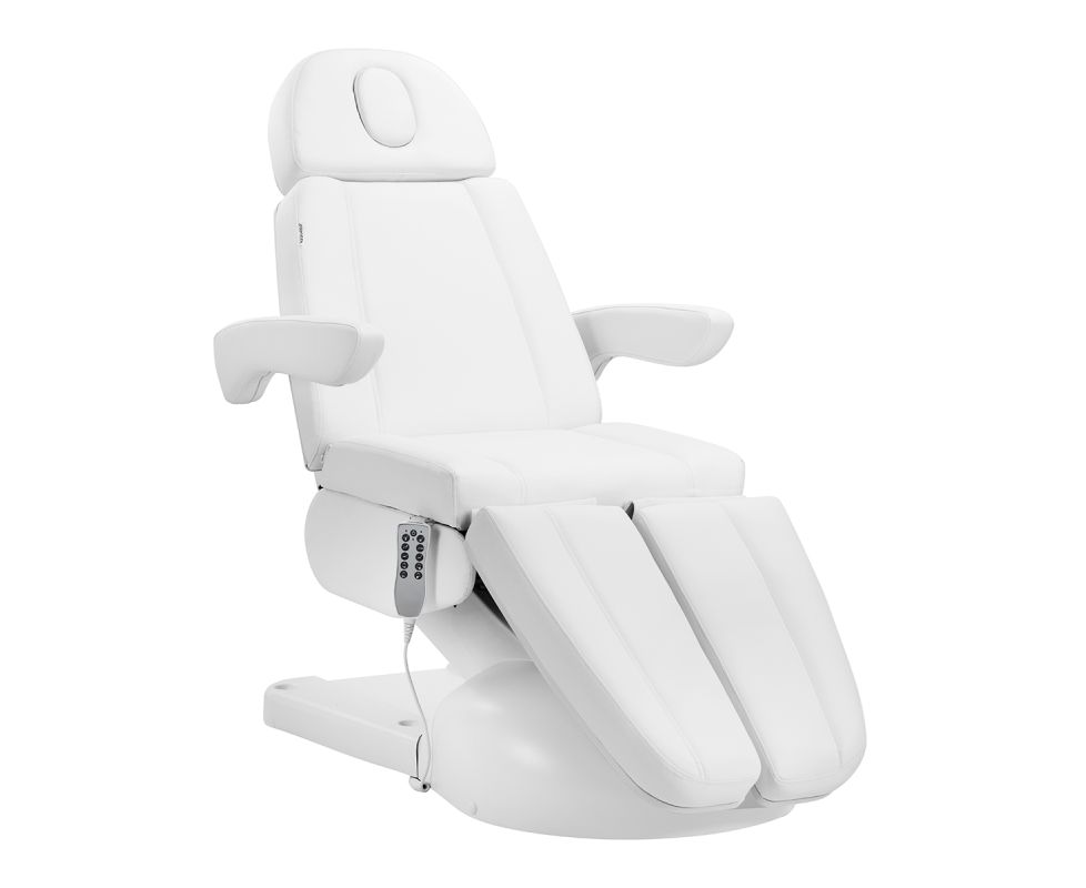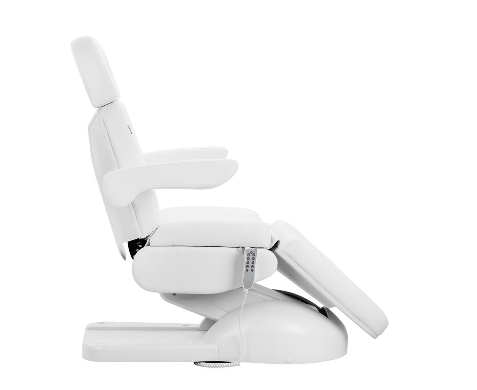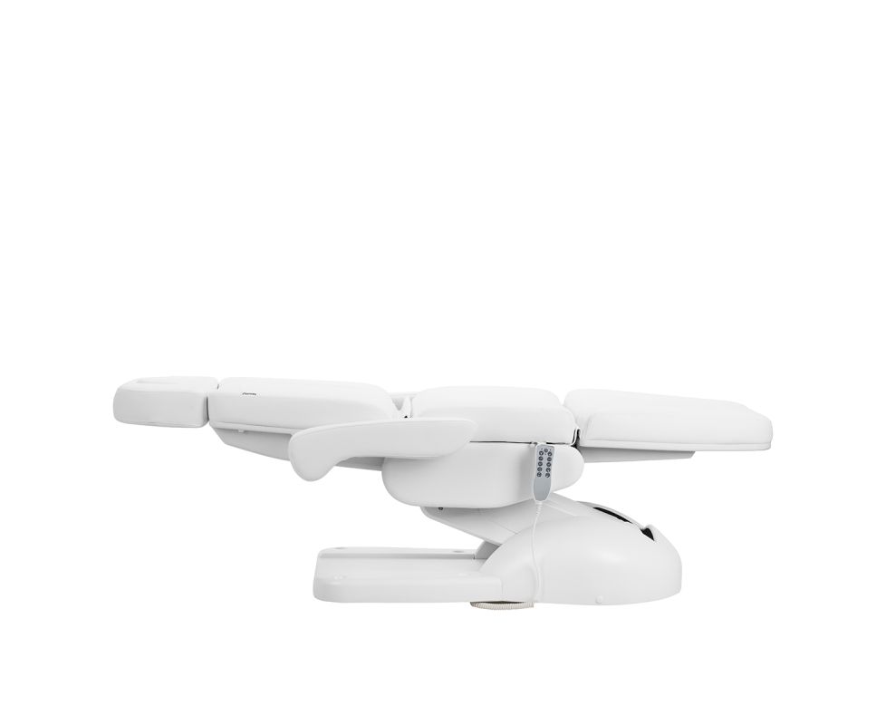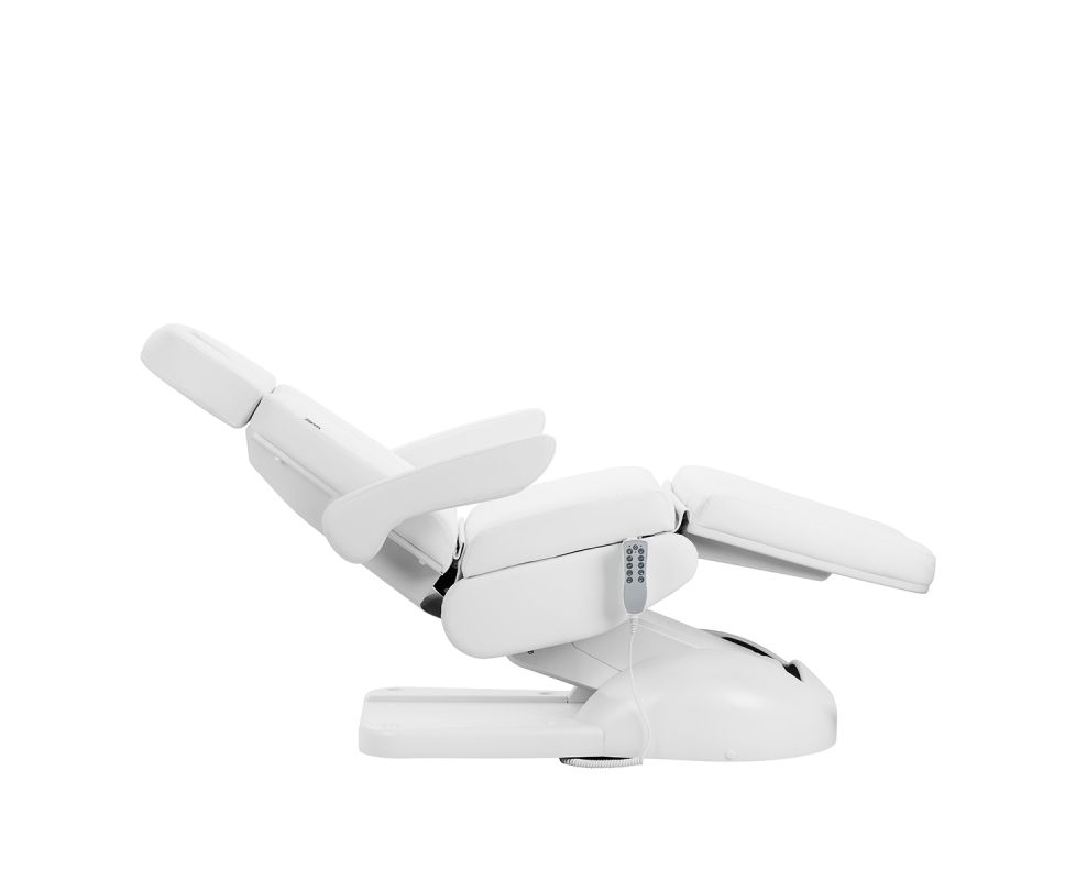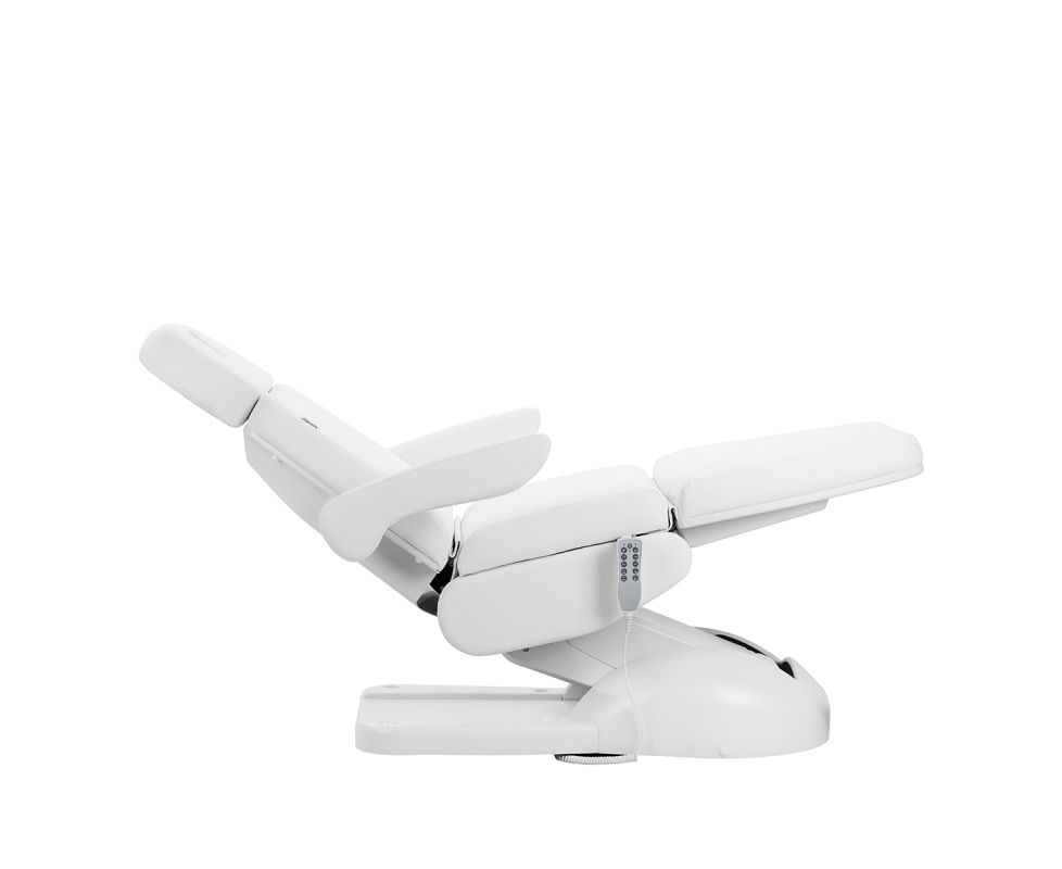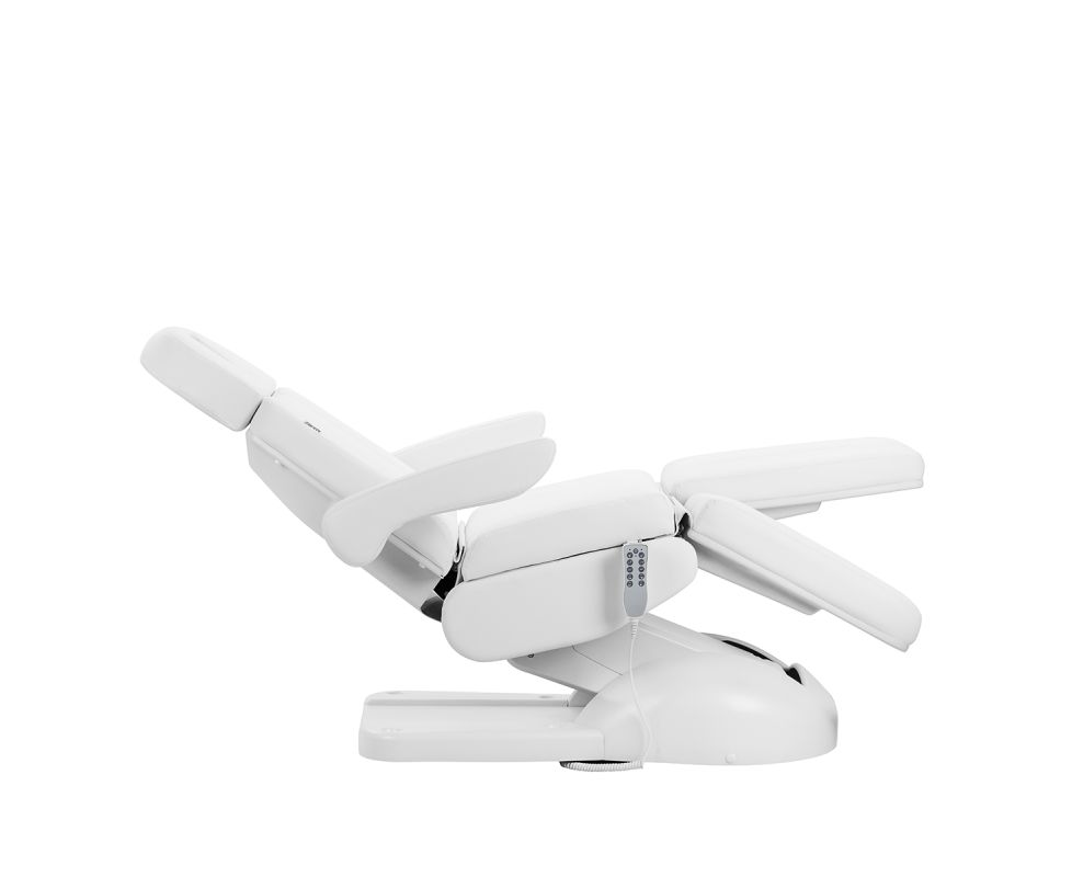 The chair has been carefully designed with podiatry specialists in mind. The split footrest allows for independent adjustment of each leg, making it easier to perform precise and comfortable treatments. The angle adjustment of each side is done with the remote, allowing for quick positioning adjustments to suit both the client and the practitioner.