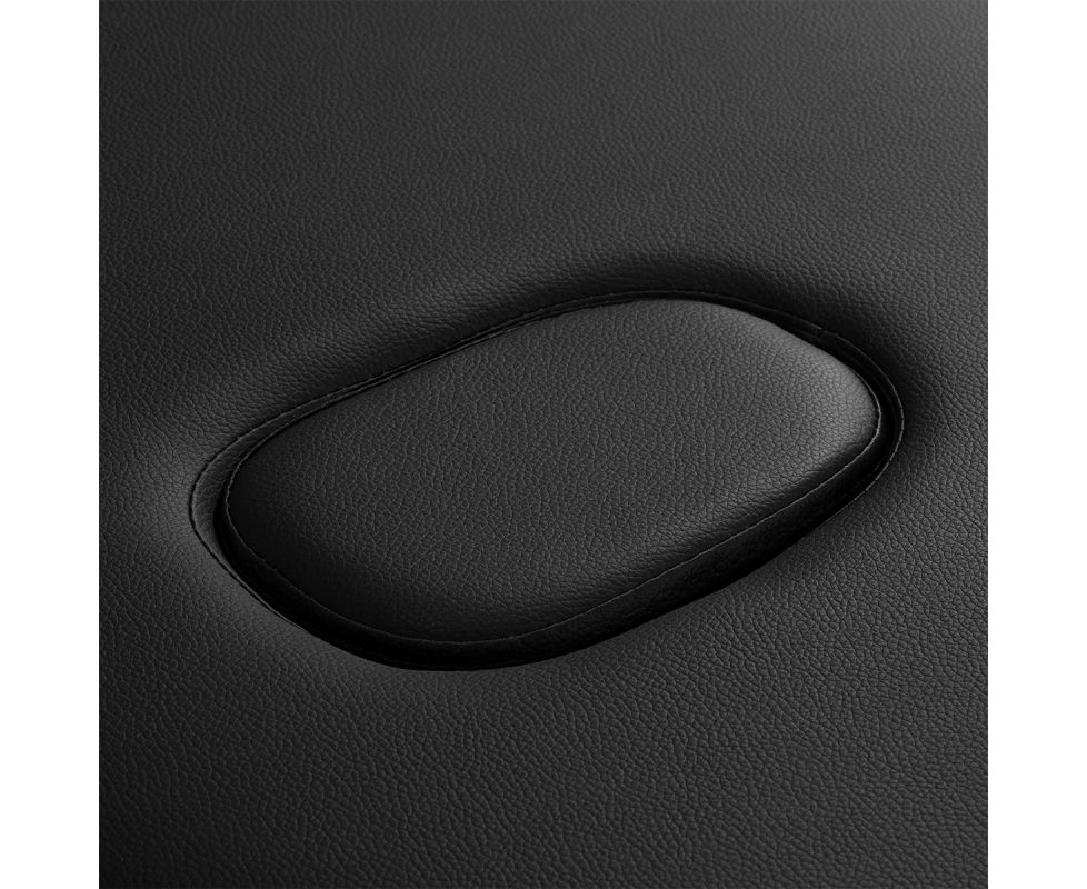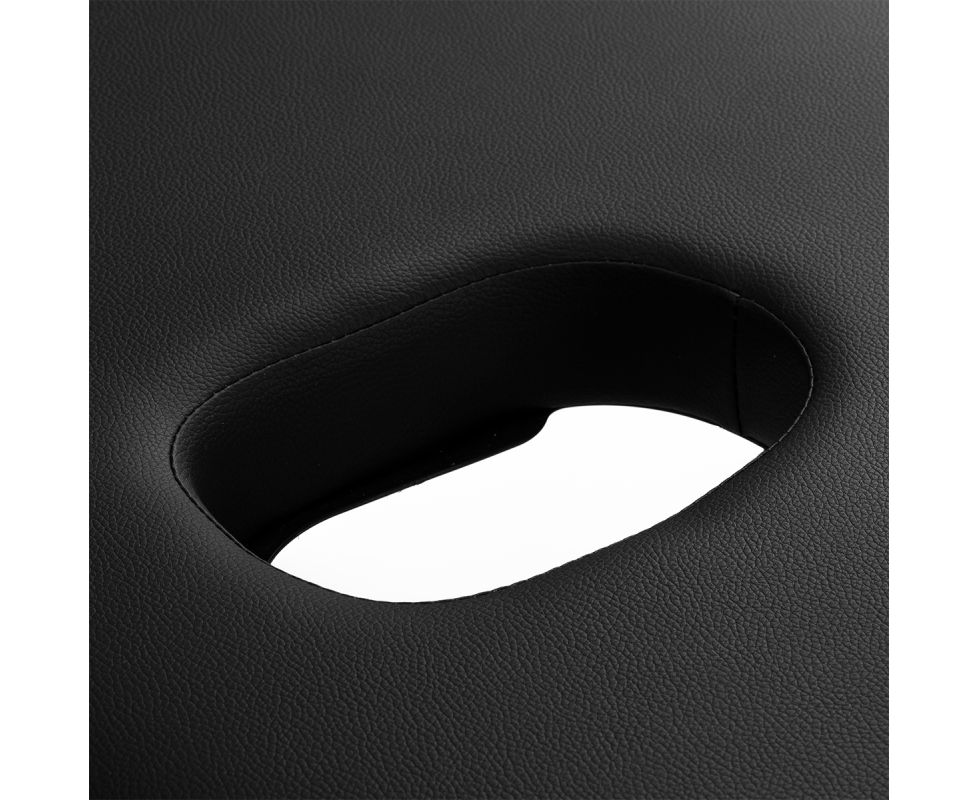 To ensure maximum comfort, the person using the table can rest their head on the ergonomic headrest, which is included in the set. This element is easy to adjust – it allows the angle to be adjusted in two planes, which makes it possible to precisely adjust its position to the user's needs and the nature of the treatment being performed. For supine therapy, the headrest can be removed, using a special hole in the tabletop instead. When not in use, the hole can be covered with the included plug, restoring the surface to an aesthetic and uniform appearance.