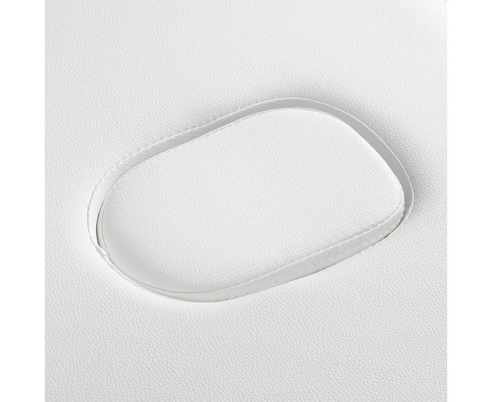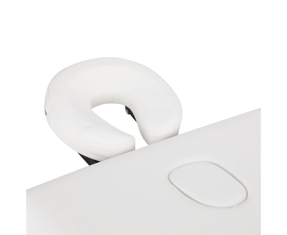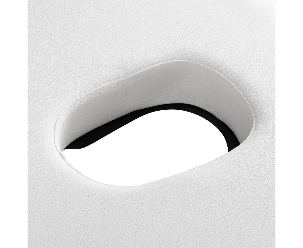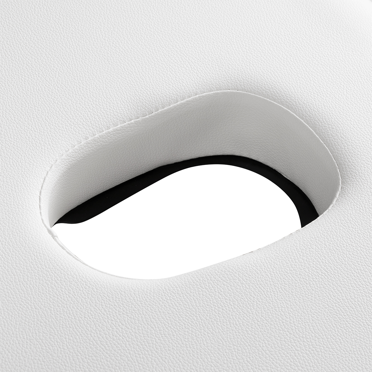 To ensure maximum comfort, the person using the table can rest their head on the ergonomic headrest, which is included in the set. This element is easy to adjust – it allows the angle to be adjusted in two planes, which makes it possible to precisely adjust its position to the user's needs and the nature of the treatment being performed. For supine therapy, the headrest can be removed, using a special hole in the tabletop instead. When not in use, the hole can be covered with the included plug, restoring the surface to an aesthetic and uniform appearance.