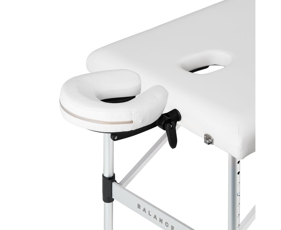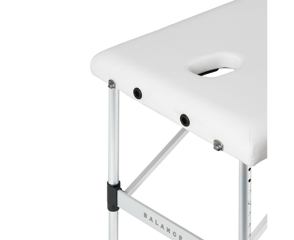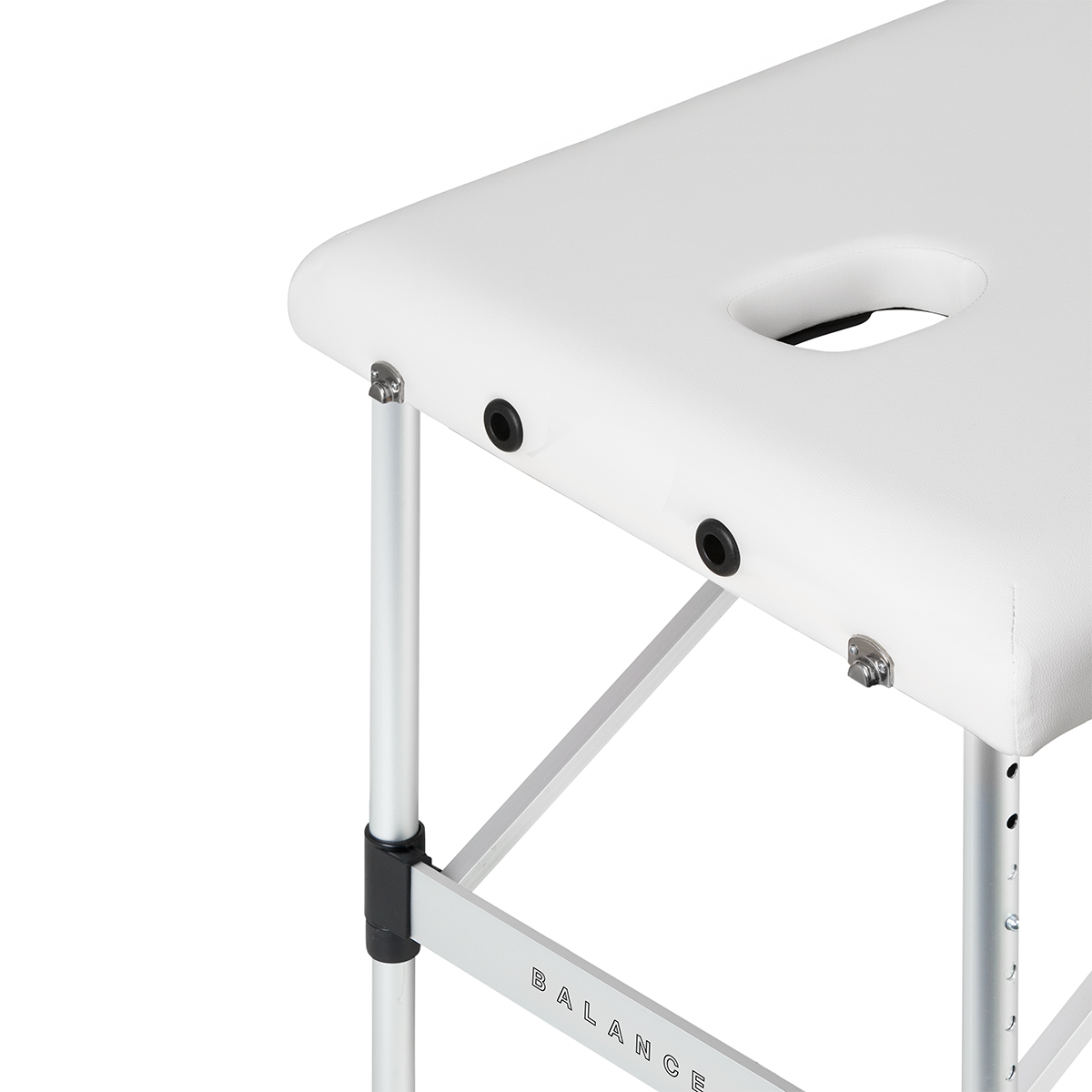 The BALANCE folding aluminium massage table is a practical and versatile solution, designed for the daily work of massage therapists, physiotherapists and other professionals. The three-segment construction ensures stability and comfort for both the person performing the treatment and the patient. Thanks to its compact dimensions, light weight and the included bag, it is also perfect for mobile work – allowing for quick and convenient folding and carrying.