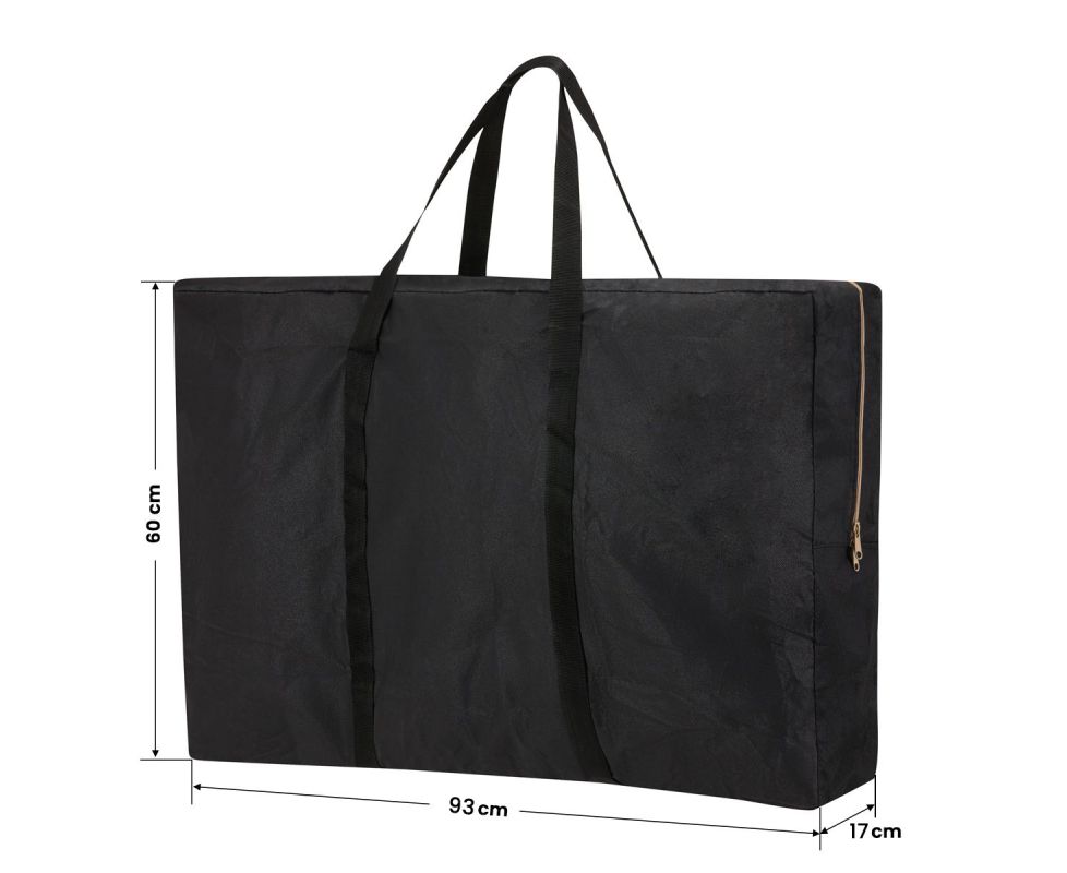 The lightweight construction makes it easy to carry, making the table an ideal choice for mobile work. The BALANCE model folds and unfolds quickly and effortlessly, and takes up little space when folded. There are straps under the table top to secure accessories for transport, allow the table to be conveniently repositioned at any time. The set also includes a dedicated transport bag with a shoulder strap and a handle – it protects the table from dirt and damage, ensuring comfortable movement.
