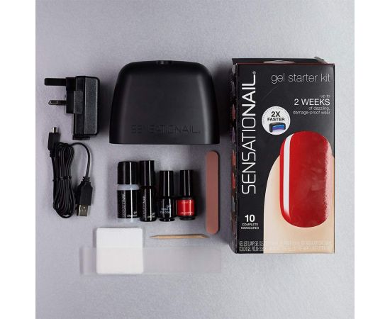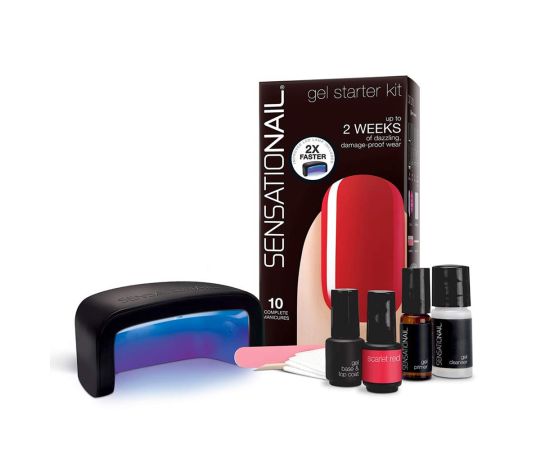Cтартов комплект за гел лак в домашни условия, комплект за маникюр Sensationail Starter Kit - Scarlet Red