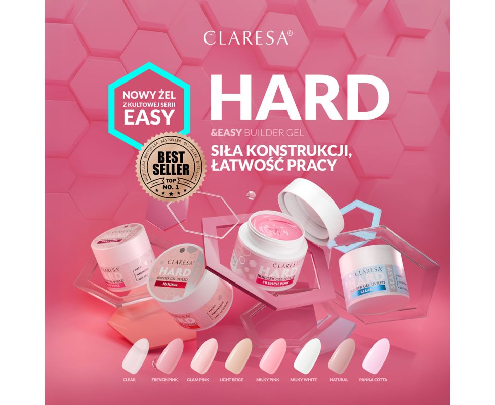 HARD&EASY - a medium density hard builder gel that provides full control when working and guarantees exceptional styling durability.