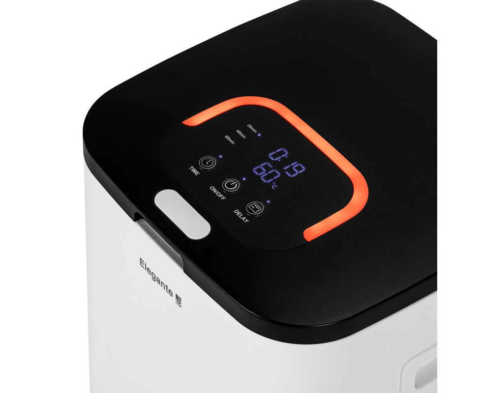 The appliance heats up quickly so that it is ready for use in no time. The heater has a timer function, allowing you to set the operating time for: 20, 40 or 60 minutes, after which the heating stops. The clear display counts down the remaining time and indicates the temperature inside the appliance. The delayed start function allows you to schedule the start-up - the setting can be adjusted in 30-minute increments up to a maximum of 24 hours. Once the delay time has elapsed, the appliance starts heating according to the set time.