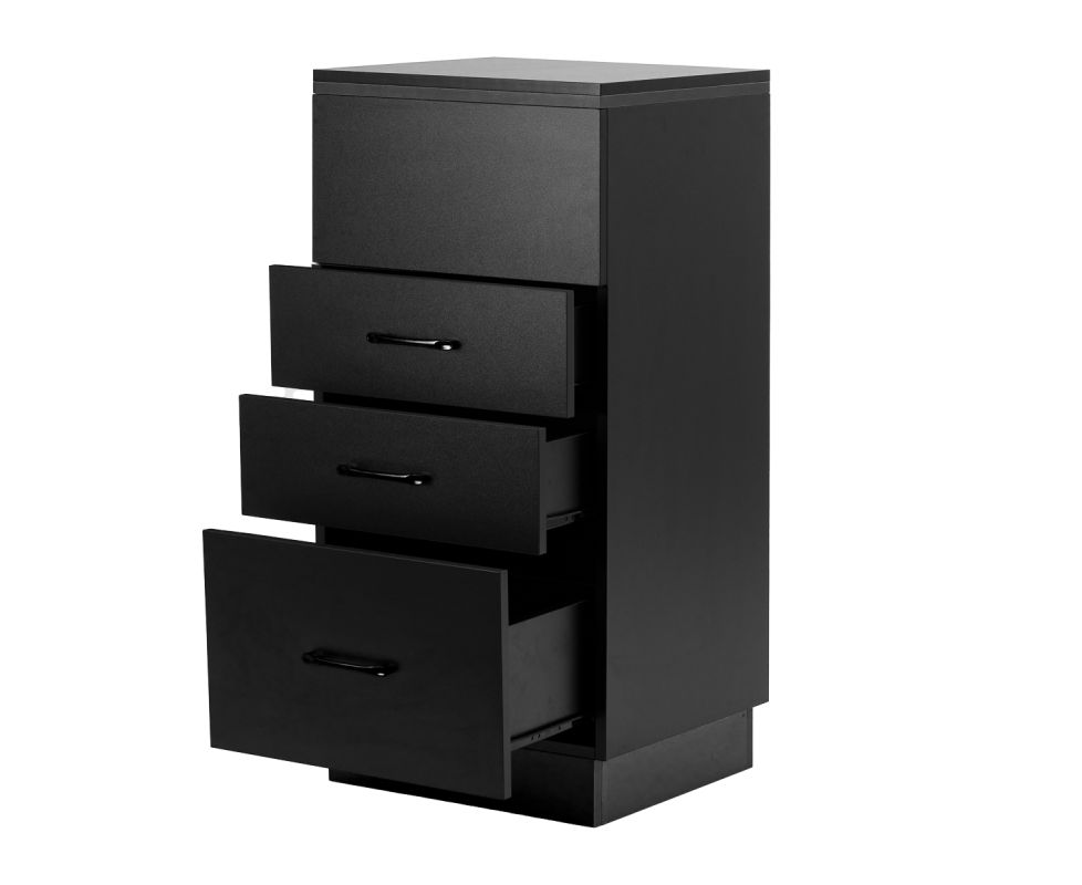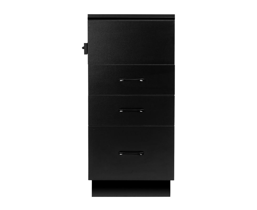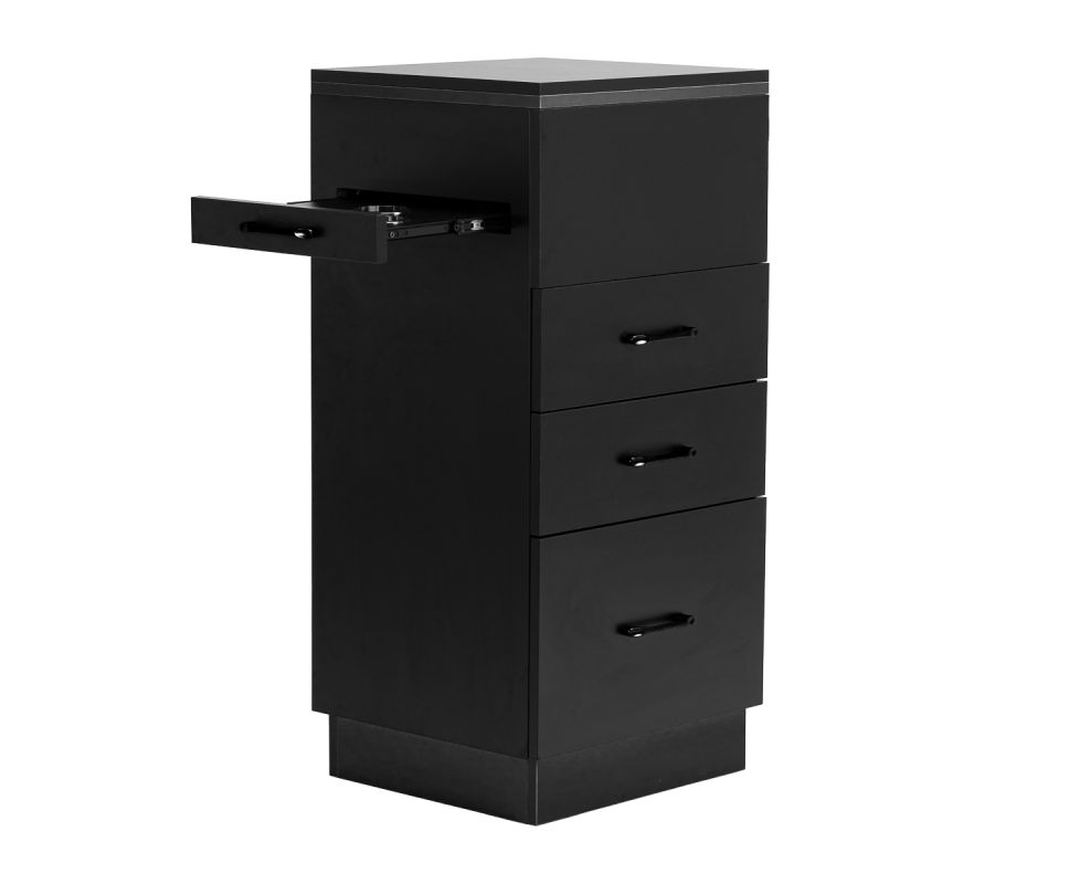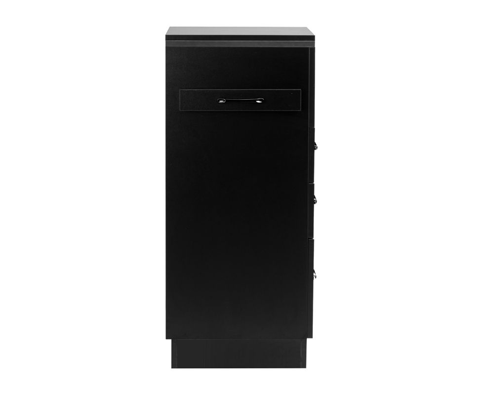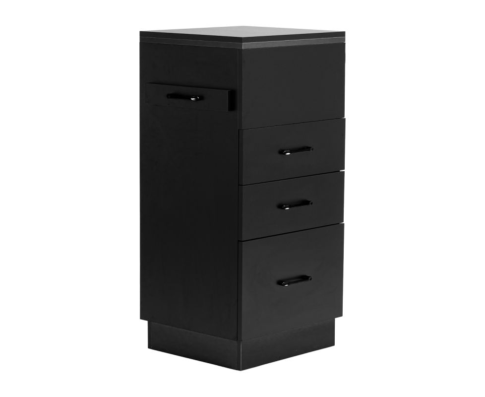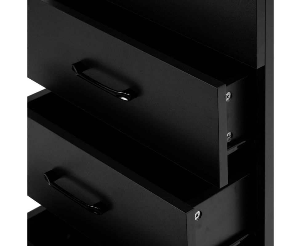 The classic black gives the helper a modern, prestigious character, which fits perfectly into both minimalist and more expressive arrangements. The solid construction ensures stability, while the smooth surface makes it easy to keep the furniture clean. The black handles not only emphasise the elegant design, but also ensure convenient opening of each drawer. It is a practical solution for a hairdressing salon, where order, convenient access to tools and aesthetics of the workstation matter.
