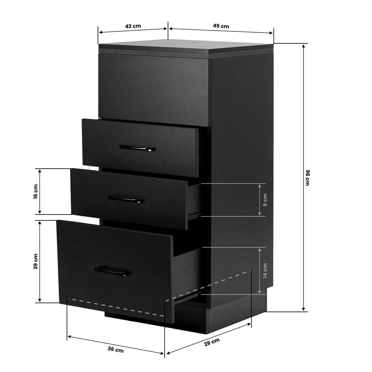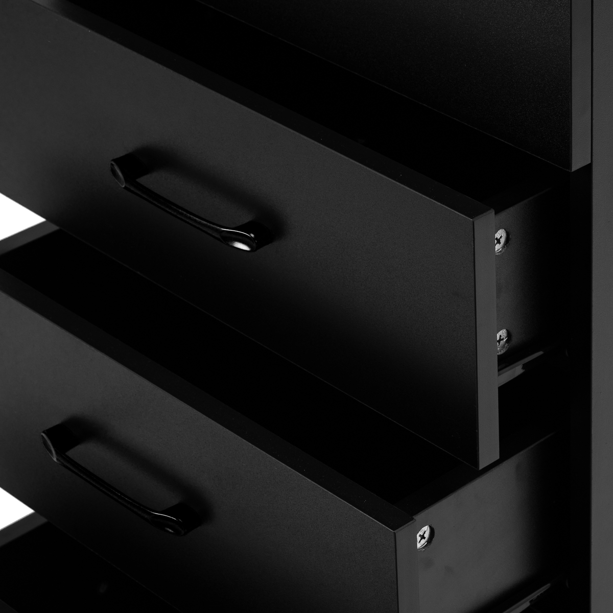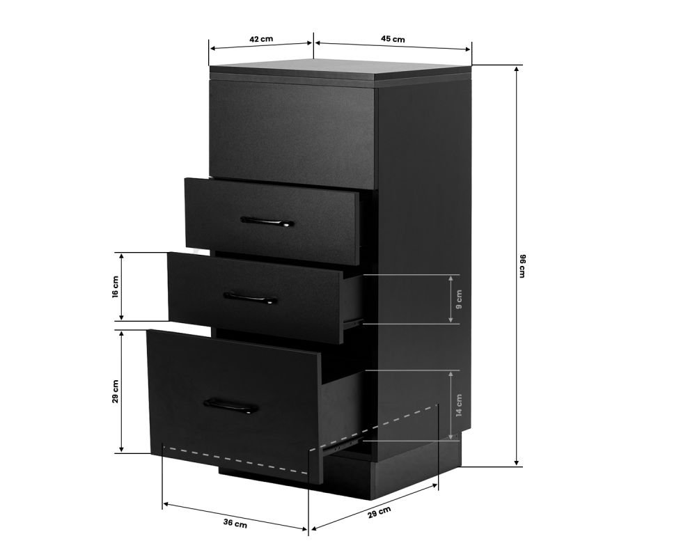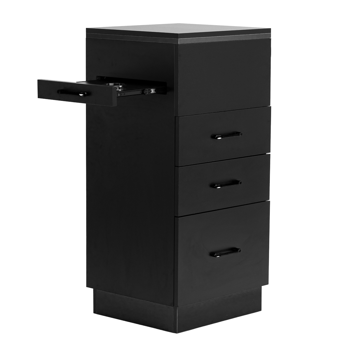 The classic black gives the helper a modern, prestigious character, which fits perfectly into both minimalist and more expressive arrangements. The solid construction ensures stability, while the smooth surface makes it easy to keep the furniture clean. The black handles not only emphasise the elegant design, but also ensure convenient opening of each drawer. It is a practical solution for a hairdressing salon, where order, convenient access to tools and aesthetics of the workstation matter.