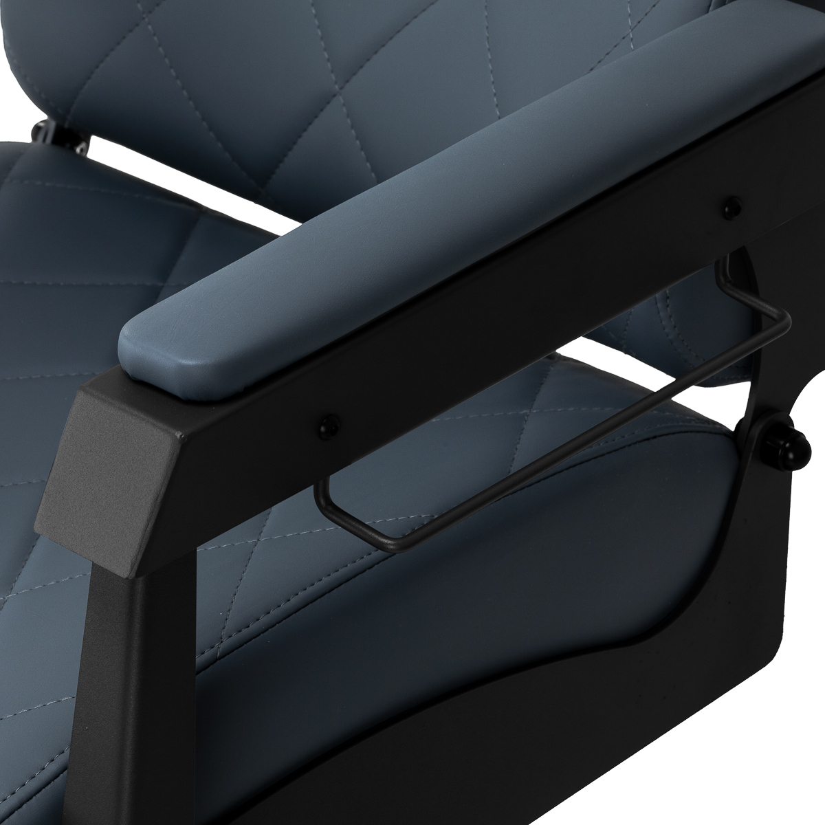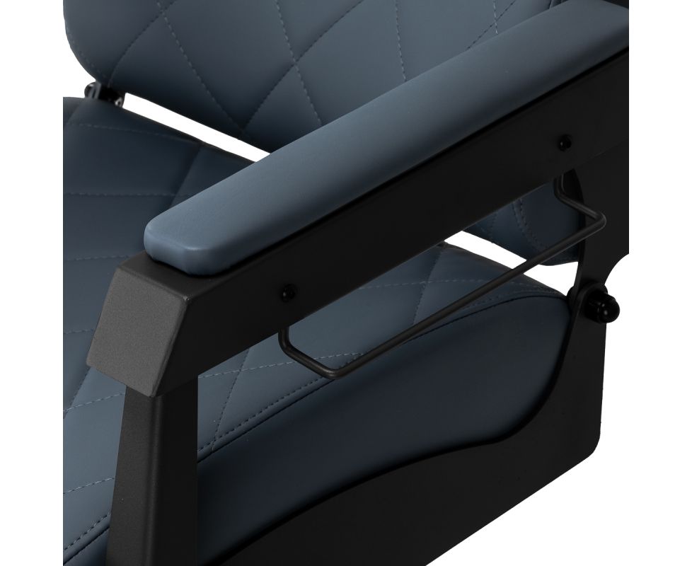 The stable construction ensures safety and long-lasting durability. The seat, filled with deformation-resistant foam, and upholstery made of soft, synthetic leather ensure durability and comfort. The moisture-resistant materials are not only durable but also easy to clean. The graphite upholstery combined with a black frame gives the chair a modern and professional look, while its minimalist style allows it to fit into the décor of any barbershop.