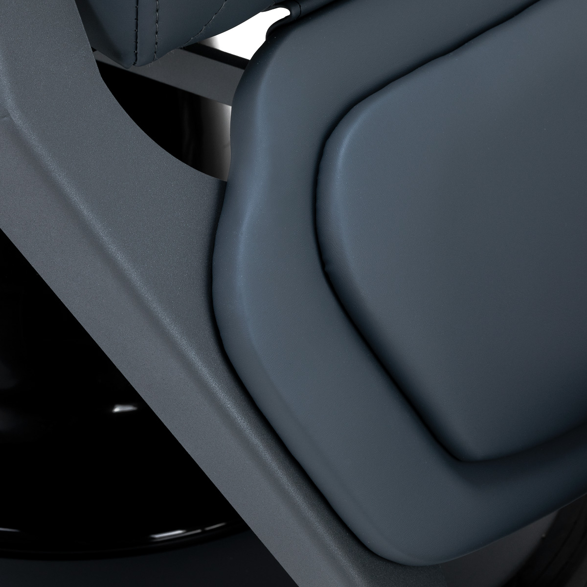 The ergonomic seat design and carefully profiled backrest ensure client comfort even during longer treatments. Upholstered armrests mounted at the optimal height allow for proper client's arm positioning, preventing tension in the neck and shoulder area. The full rotation mechanism increases work flexibility and allows for easy adjustment of the chair to any position.
