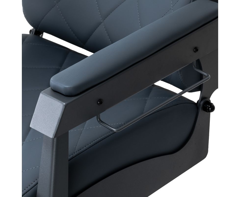 The stable construction ensures safety and long-lasting durability. The seat, filled with deformation-resistant foam, and upholstery made of soft, synthetic leather ensure durability and comfort. The moisture-resistant materials are not only durable but also easy to clean. The graphite upholstery combined with a graphite frame gives the chair a modern and professional look, while its minimalist style allows it to fit into the décor of any barbershop.
