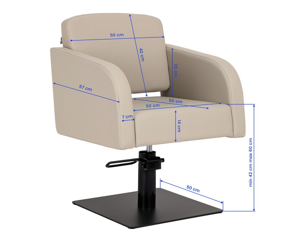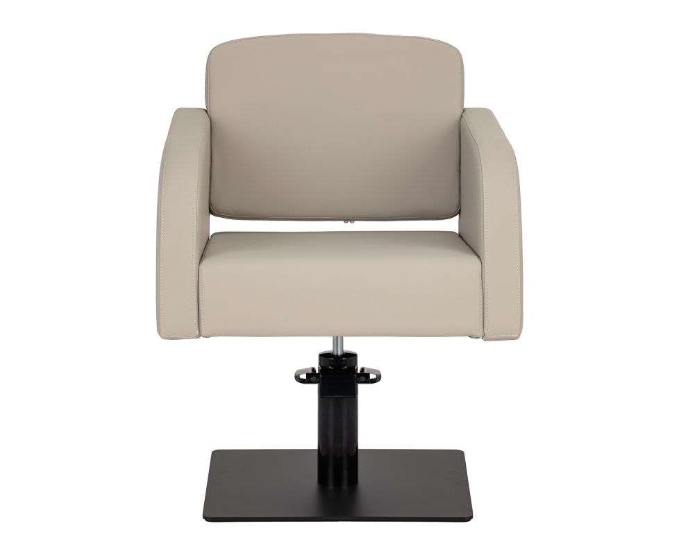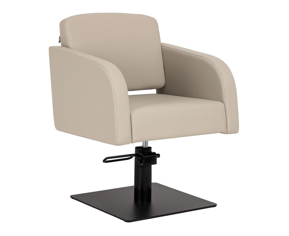 The Gabbiano Elda hairdressing chair combines minimalist design with functionality and everyday comfort. Streamlined lines give it a light and modern character, while the stable, square base in matte black further emphasises its style. The soft foam filling combined with soft-touch synthetic leather in shades of grey-beige ensures comfort even during long treatments. Carefully selected materials ensure durability, moisture resistance, and ease of cleaning. The chair fits perfectly into both modern and classic interiors, emphasising the professional character of the salon.