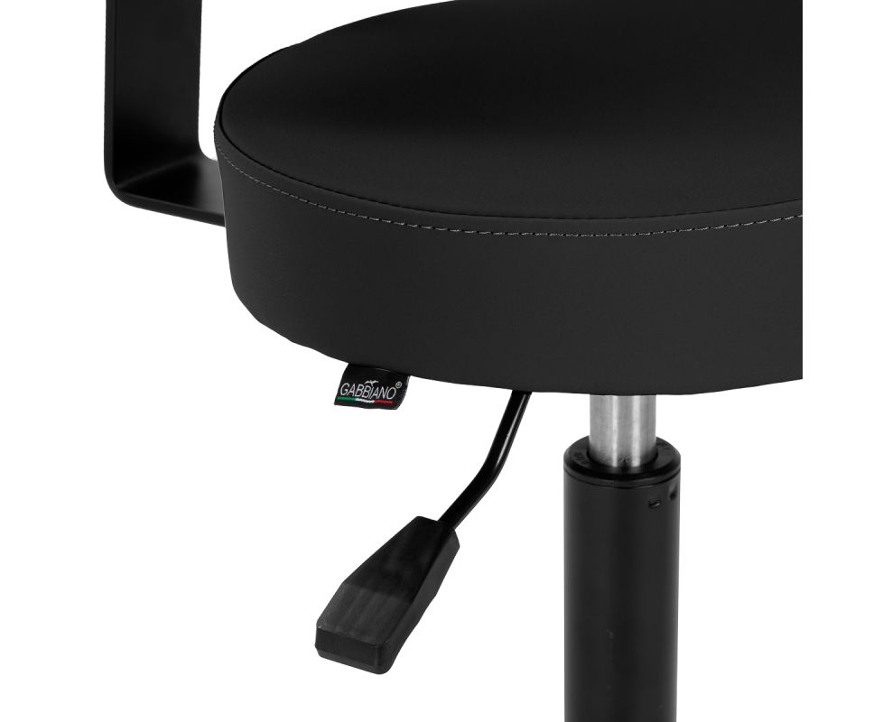The practical Gabbiano D026 hairdressing stool with backrest was designed with comfort and ergonomics in mind. The profiled backrest supports proper posture, relieving pressure on the spine even during long hours of work. The stable construction combined with the highly mobile wheels ensures freedom of movement and complete comfort.