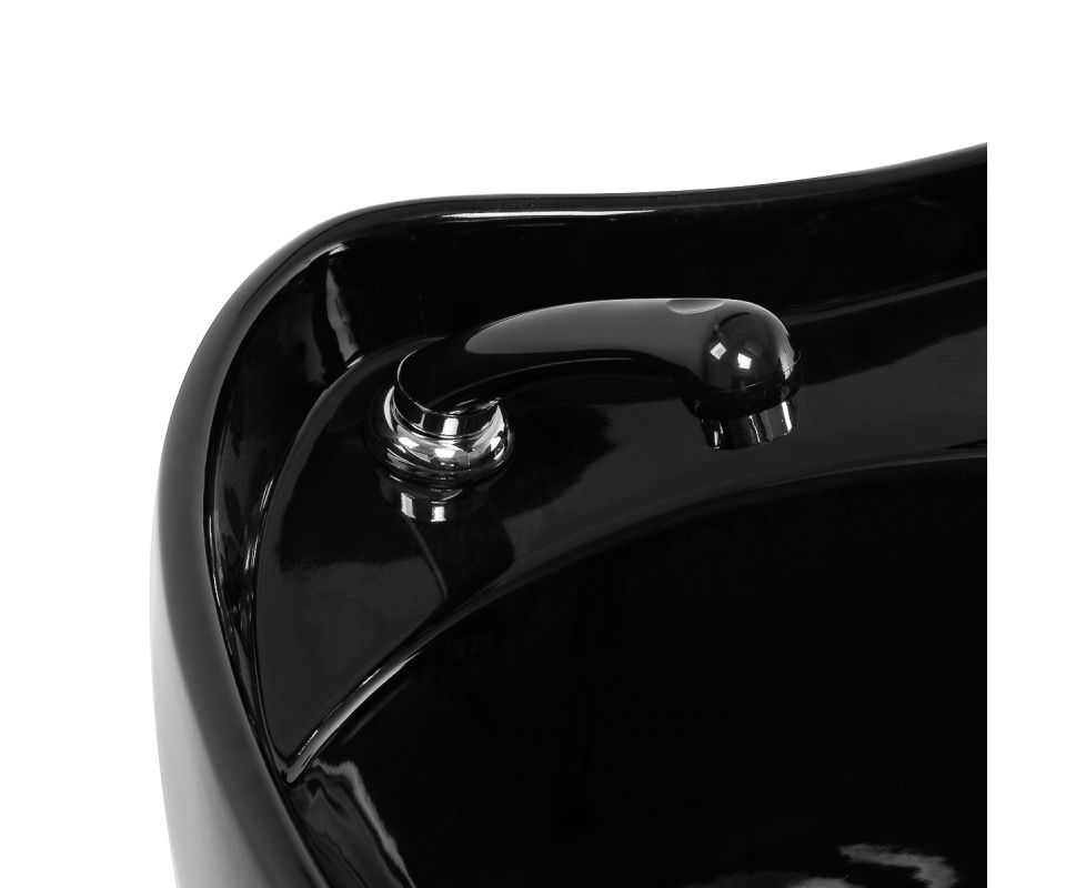 A black ceramic bowl of appropriate depth effectively minimises splashing of water and preparations used during treatments. The adjustable angle of inclination makes it easy to adjust its positioning to individual needs, which translates into comfort and efficiency of work. The high-quality material ensures durability, resistance to scratches and discolouration, and also makes it easier to keep clean. The appropriately profiled collar provides optimal support and comfort during hair washing, while the comfortable plastic cover in shades of black ensures that the client will feel any discomfort associated with the cold ceramic surface.