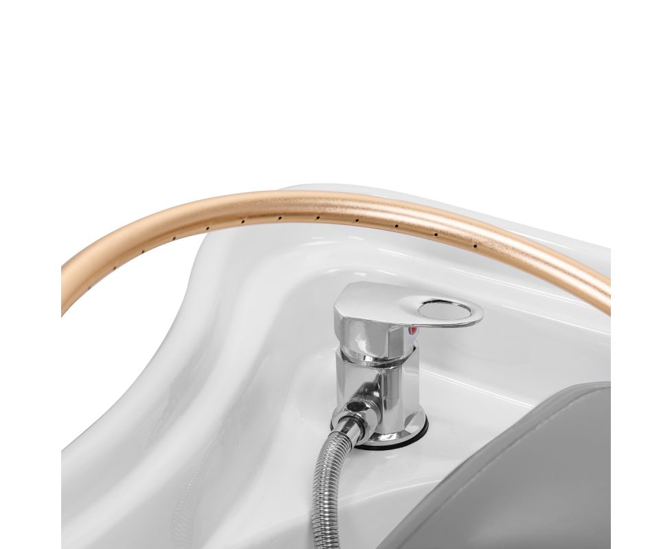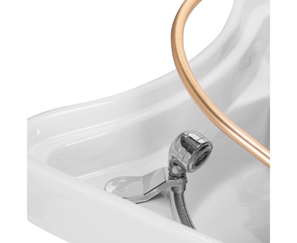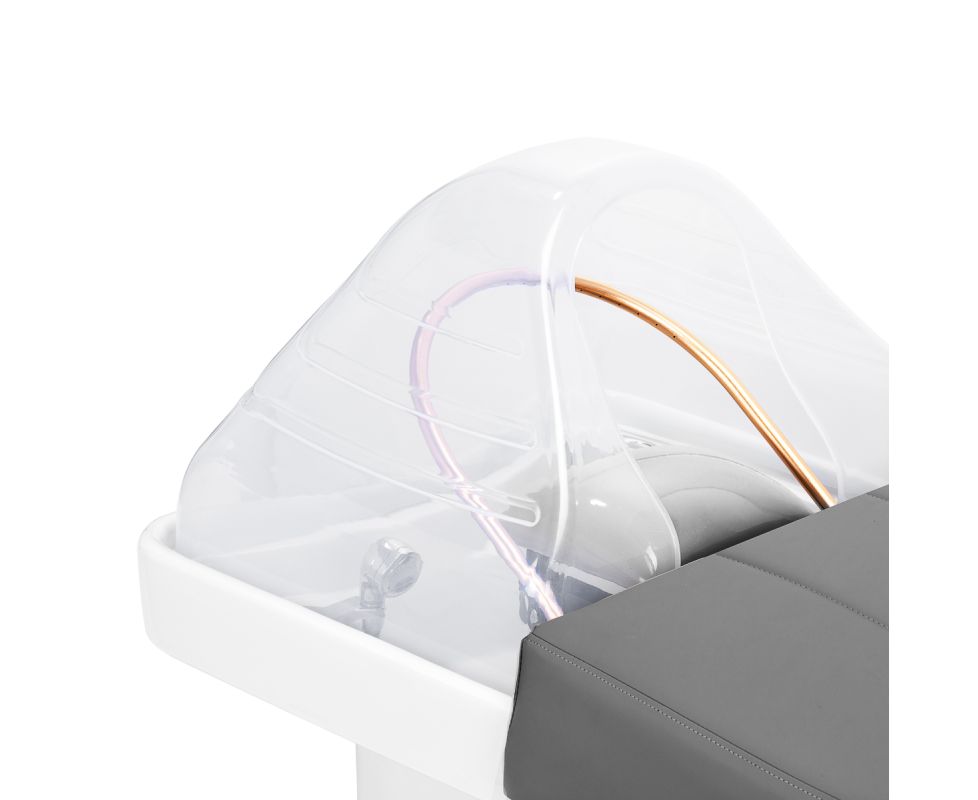 The deep ceramic bowl in shades of white effectively prevents splashing of water and products used during treatments, ensuring cleanliness and comfort of work. Its unique bend not only facilitates access for the practicioner, but also adds an elegant, modern character to the wash unit. Made of durable material, the bowl is resistant to discoloration, scratches and damage, and its smooth surface makes keeping it clean exceptionally easy. The combination of functionality and aesthetics raises the standard of any professional space.