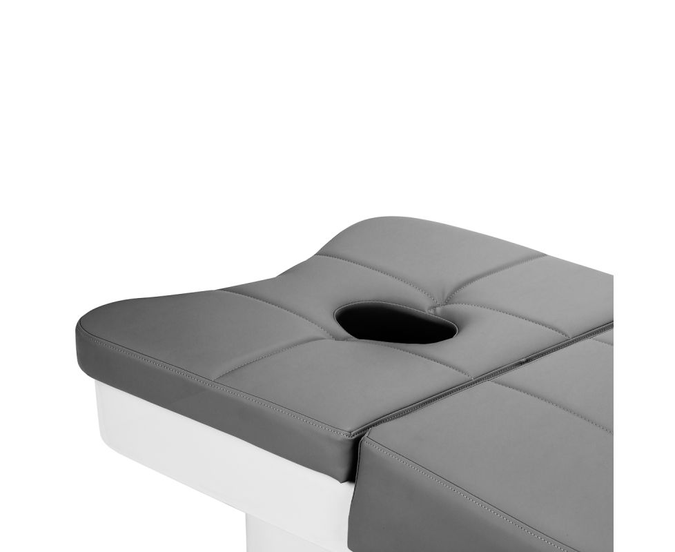 The adjustable headrest with the possibility of extending and changing the angle of inclination ensures a perfect fit to the user's needs, increasing comfort during treatments. The set also includes ergonomic pillows, including a headrest with an opening for the face, which allows you to perform not only scalp care procedures, but also massages and various body and face treatments. With these practical solutions, the lounger becomes a versatile element of beauty & wellness salon equipment, guaranteeing comfort and effectiveness of any therapy.