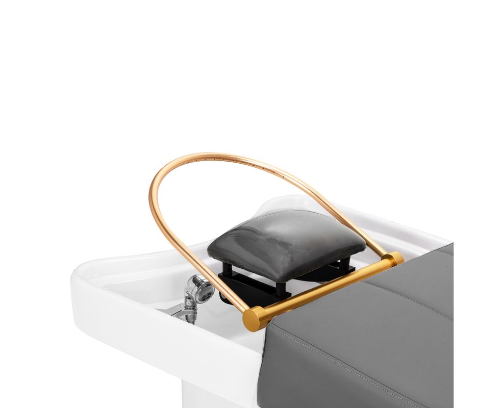 The golden arc with an adjustable angle of inclination, designed for the Waterfall Head SPA, is an innovative solution that allows for holistic care of the scalp. The water jets act as a natural massage, improving blood circulation, reducing tension and stress. The precisely controlled water flows support hair regeneration and intensively moisturise the skin. The waterfall arc with the possibility of adjusting the angle ensures deep cleansing of the scalp and relaxation, bringing relief from ailments such as headaches or stiff neck. Thanks to an intelligent closed-loop system, the arc draws water from the bowl and reuses it, providing an uninterrupted water massage. This is a combination of technology and relaxation that supports hair health and well-being.