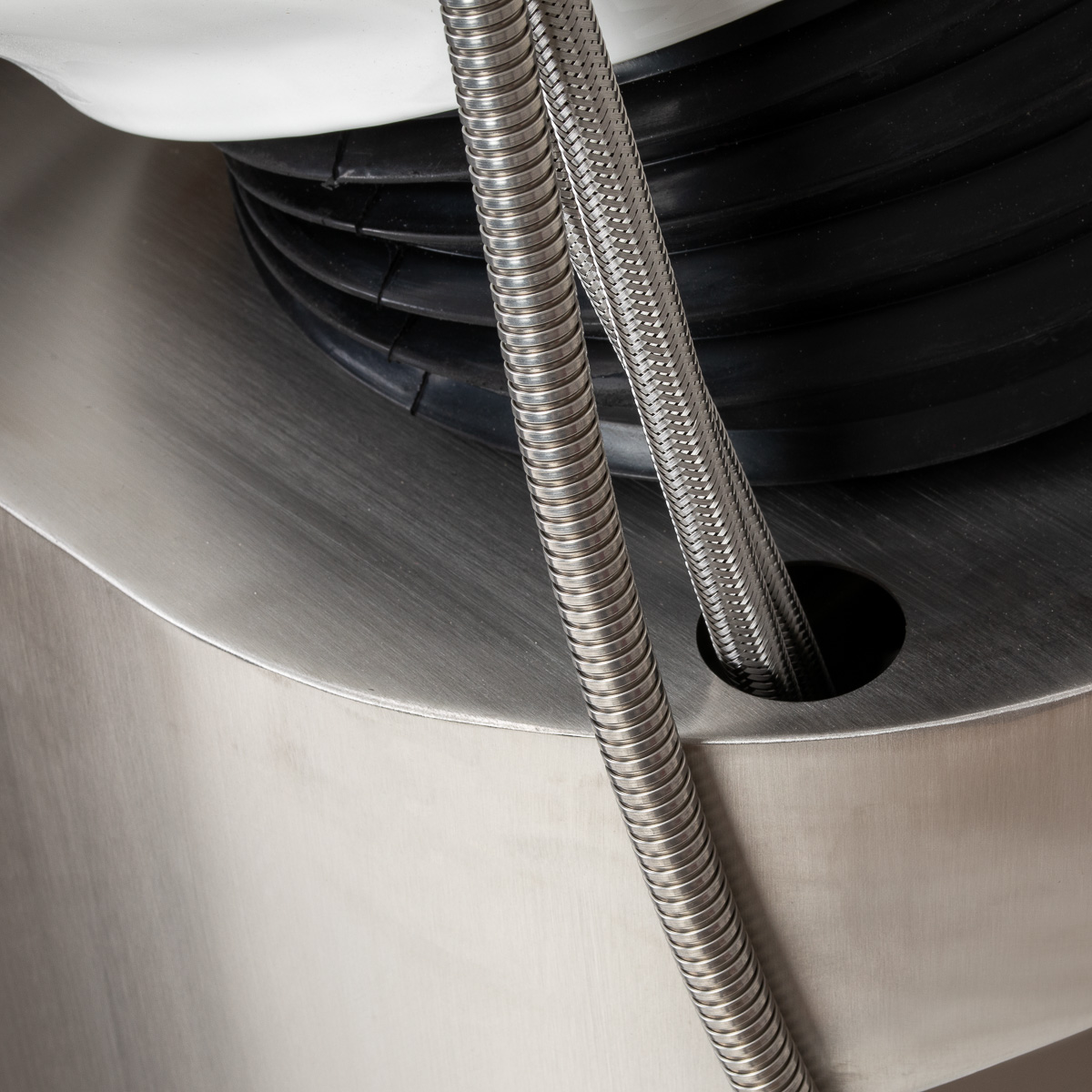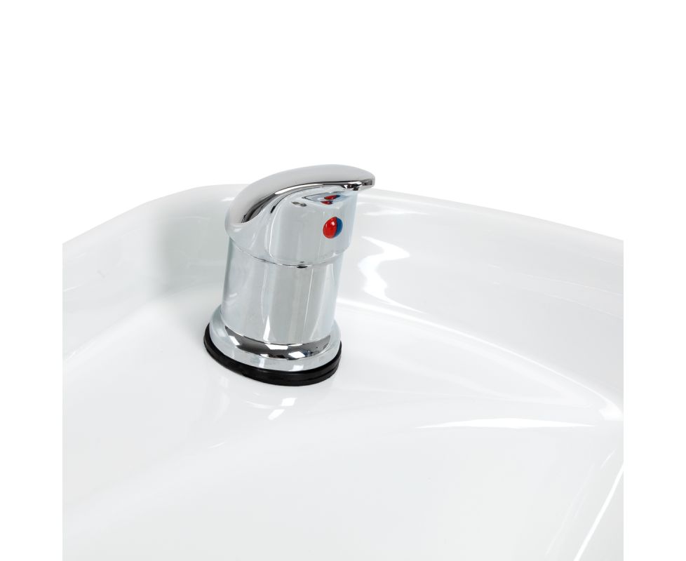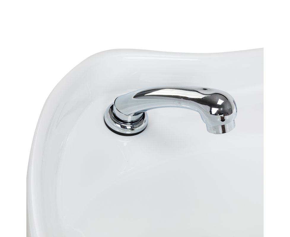 The depth of the ceramic washbasin bowl in shades of white allows for comfortable and efficient performance of a wide range of hairdressing services, preventing excessive splashing of water and products used during the treatment. The material used makes the washbasin durable, resistant to discoloration and scratches, and very easy to keep clean. The appropriately profiled collar and inclined backrest provide support and comfort while washing hair, and thanks to the comfortable plastic overlay in shades of black, the client will not feel discomfort from the cold ceramic surface.