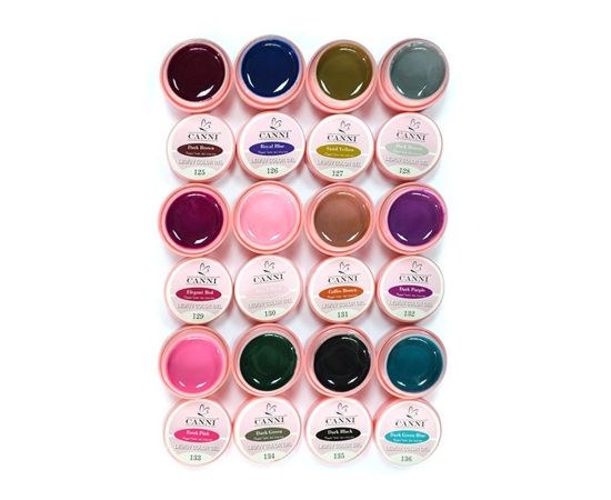 Цветните гелове Canni се отличават със своите разнообразни нюанси и високо качество. Те имат силна покривност и могат да се използват за боядисване на целия нокът или за nail art – изчертаване на фини линии или контролирани декорации.