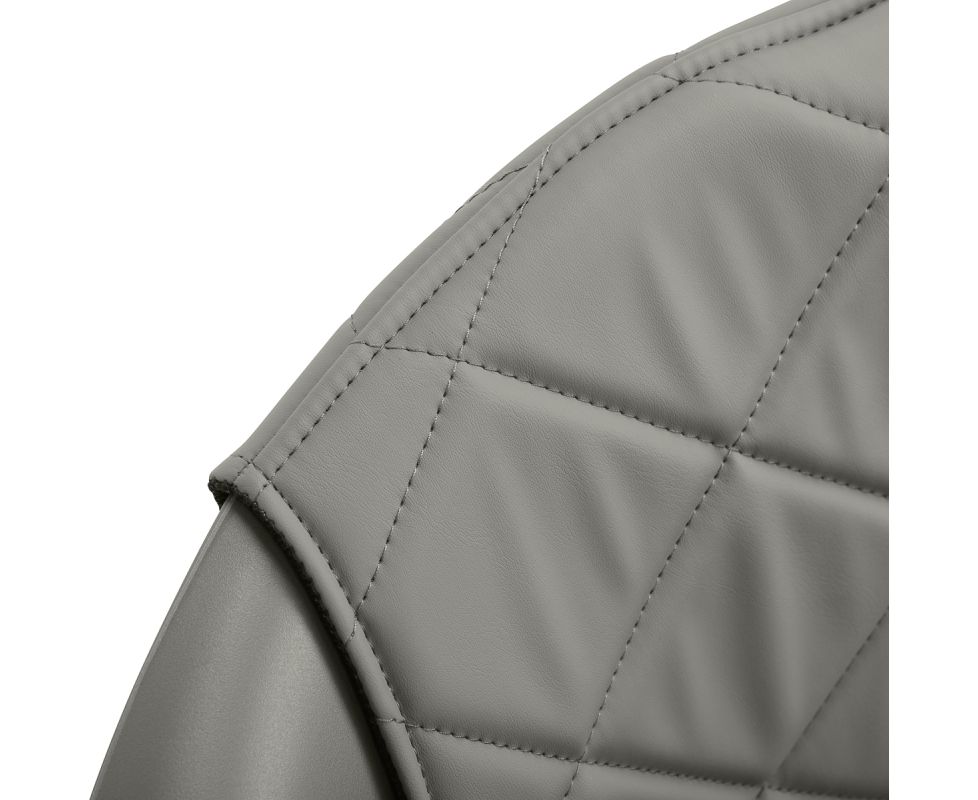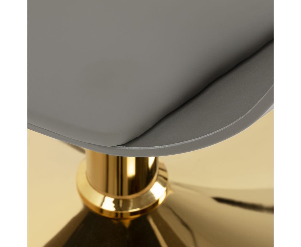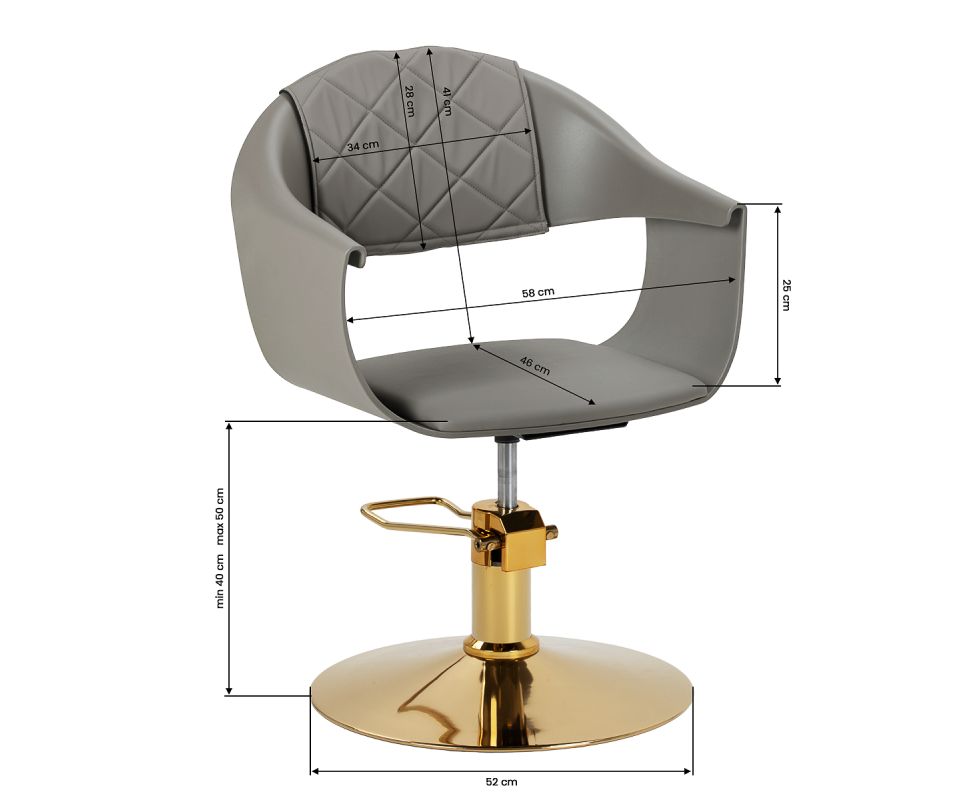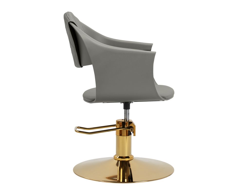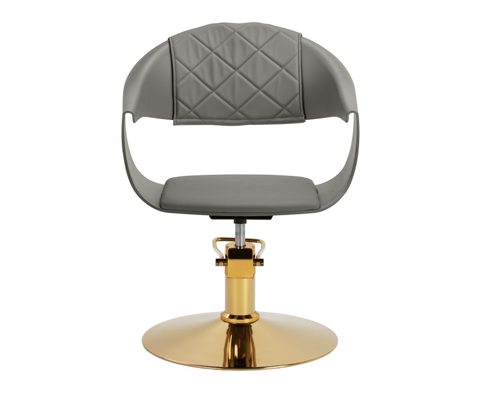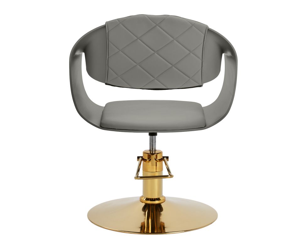 The sturdy grey plastic construction ensures durability. The materials used make the equipment comfortable to use, resistant to moisture and easy to clean. The round base in shades of gold guarantees stability and strength. The minimalist grey colour combined with the aesthetic stitching and the gold of the base makes the chair fit perfectly into various styles of hairdressing salon interiors, introducing an elegant and modern accent.