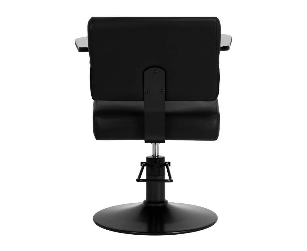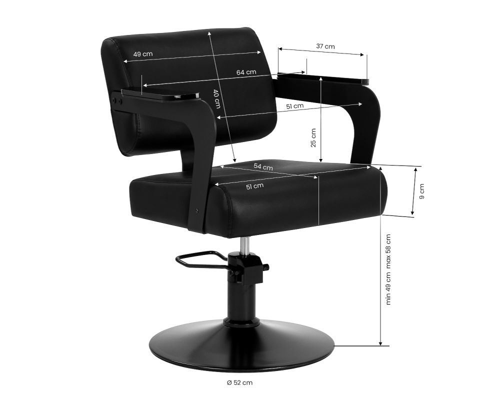 The efficient hydraulic lift allows for precise adjustment of the seat height within the range of 49-58 cm, which allows for comfortable positioning of the chair and ensures ergonomic work. The profiled backrest provides adequate back support, promoting a comfortable position even during longer visits to the salon. The space between the seat and the backrest makes it easy to keep the workstation clean.