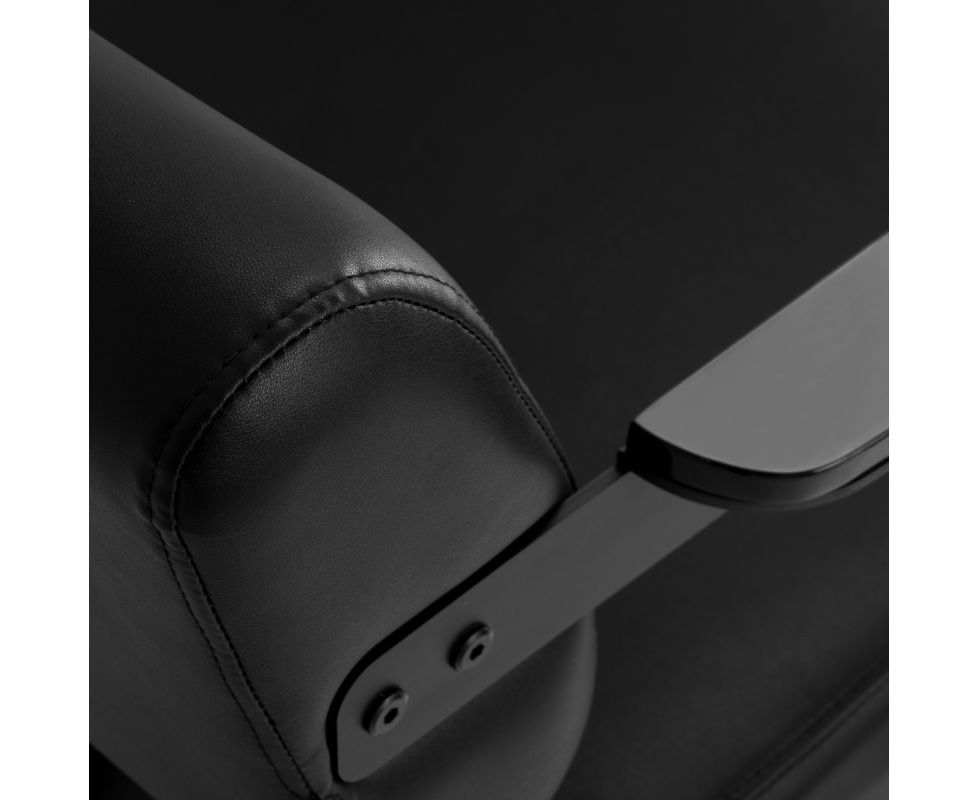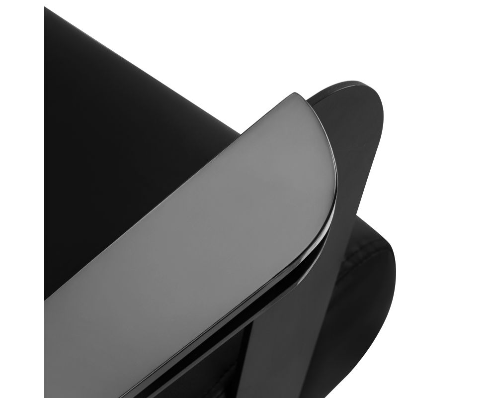 The seat is filled with durable, deformation-resistant foam and covered with synthetic leather, ensuring comfort and long life. The materials are moisture-resistant, easy to clean and suitable for intensive use in salon conditions. The black upholstery gives the chair an elegant, timeless character that harmonises with the black structural elements. The modern design makes the Hair System Jet hairdressing chair an aesthetic and functional piece of equipment for professional hairdressing salons.
