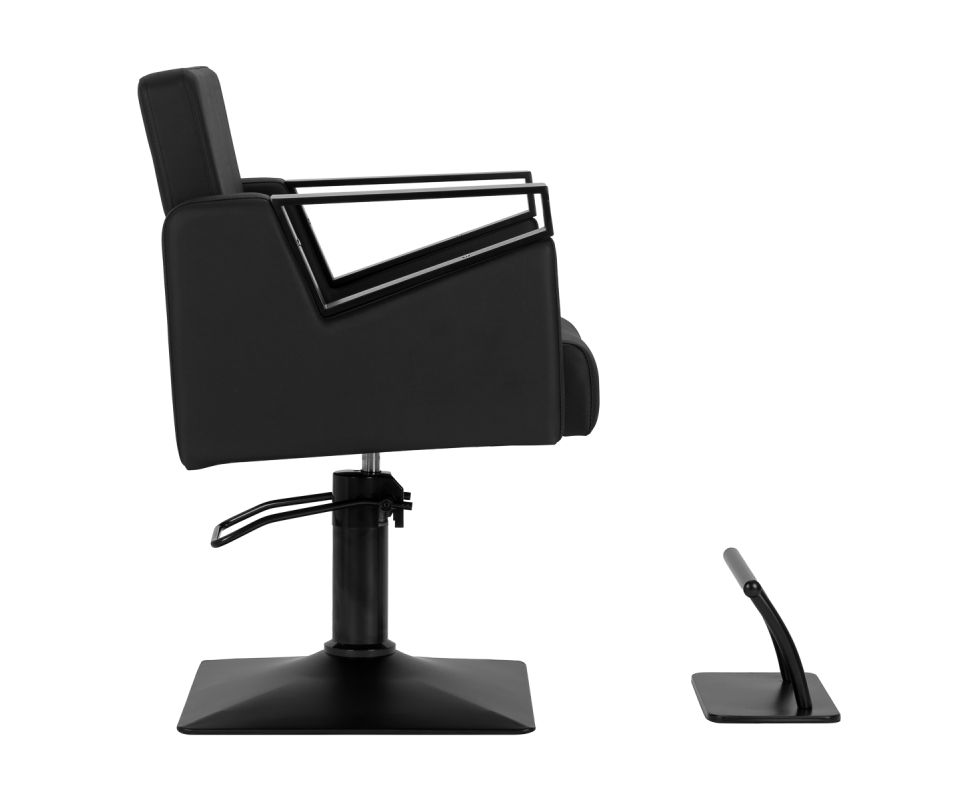 The elegant Hair System Duplex noir hairdressing chair with efficient hydraulic lift and separate footrest is a practical piece of furniture that will add character to any salon. The classic colour scheme and decorative details in shades of black emphasise its elegant appearance. High functionality guarantees comfort for both hairdressers and clients.