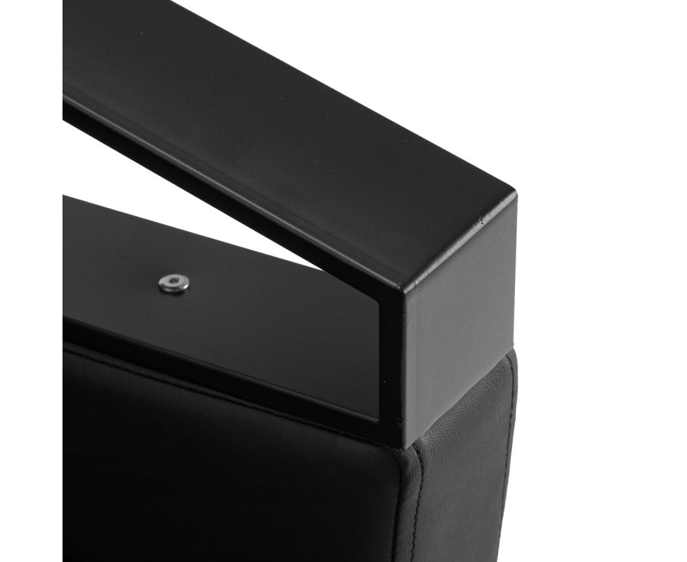 The armchair is filled with durable, deformation-resistant foam, ensuring that the chair retains its form and functionality for a long time. The imitation leather upholstery, pleasant to the touch and solidly finished, is characterised by its resistance to moisture, high durability and ease of cleaning. The covering in shades of black and the decorative black elements give it a timeless elegance. The classic finish makes the armchair look perfect in almost any space, emphasising the style of the living room.