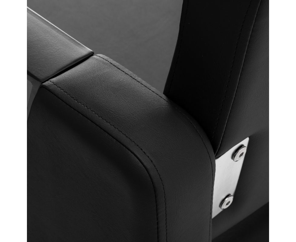 The chair's solid, square base guarantees stability during use, while its smooth surface makes it easy to keep clean. The aesthetically pleasing and ergonomically designed armrests are placed at the right height, allowing the client to position their shoulders correctly - they do not bury their head in their arms or slouch. As a result, treatments, including haircuts, run more smoothly and the hairdresser is able to work with precision, keeping the client comfortable at every stage of the service.