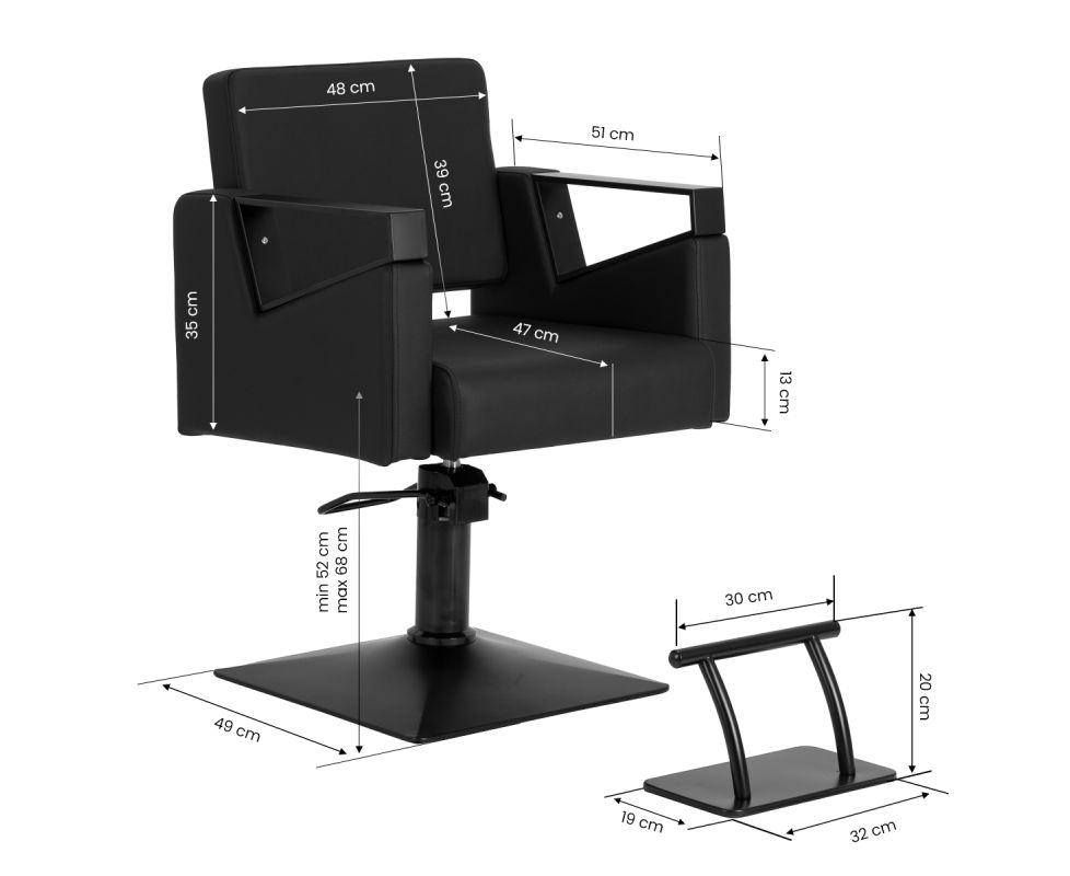 The durable hydraulic lift makes it possible to adjust the seat height from 52-68 cm, even when the client is sitting on the chair. This makes the hairdresser's work more ergonomic and the chair height can be adjusted to suit the height of both the client and the professional. The appropriately shaped backrest ensures a comfortable position, which is particularly important for longer treatments. In addition, the chair is equipped with a matching footrest with a non-slip base that stably supports the client's feet, guaranteeing comfort throughout the service.