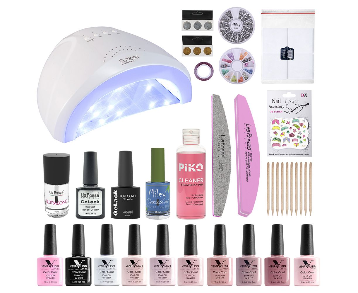 Ентусиастите на Гел лак могат да поръчат Комплект за гел лак 10 х гел лак Venalisa + Лампа Sunone, комплект за маникюр, печка за нокти, Nude colors по всяко време на денонощието.