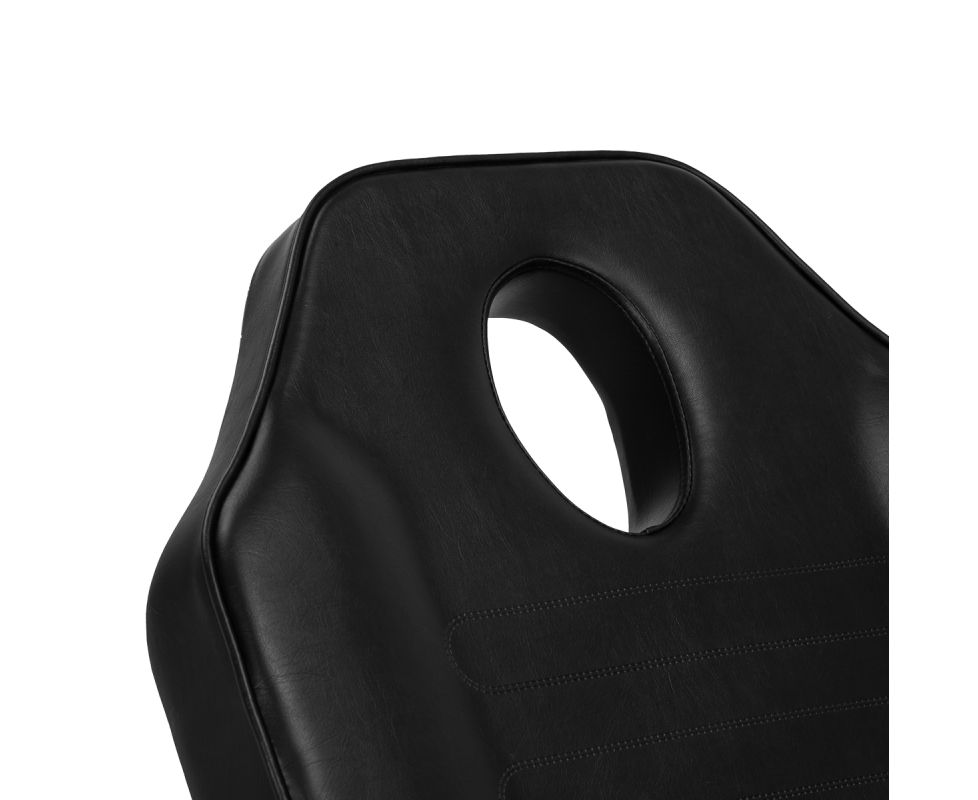 The lockable full rotation mechanism ensures maximum functionality and facilitates access to the client from all sides – even in smaller spaces. The chair can be easily unfolded into reclining position, and an opening in the headrest, hidden under the cushion, allows for comfortable facial positioning during procedures performed in a supine position.