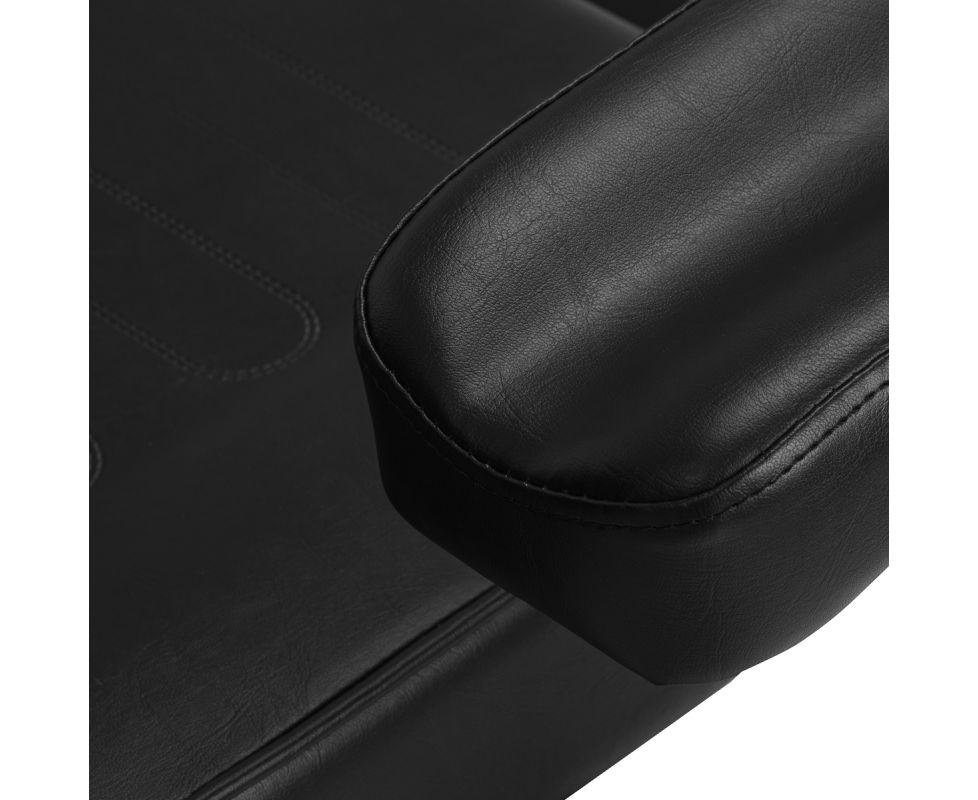 The stable construction and solid base guarantee durability, safety, and the stability necessary for precise tattooing. Wheels located on one side of the base allow for easy movement of the chair without having to lift it. The foam padding with the appropriate density ensures comfort even during long sessions. The black synthetic leather upholstery with a semi-matte finish is moisture-resistant and easy to clean. Decorative stitching on the seat and footrest enhance the professional look of the furniture and give it a unique character. The classic colours and minimalist design perfectly complement the aesthetics of tattoo studios.