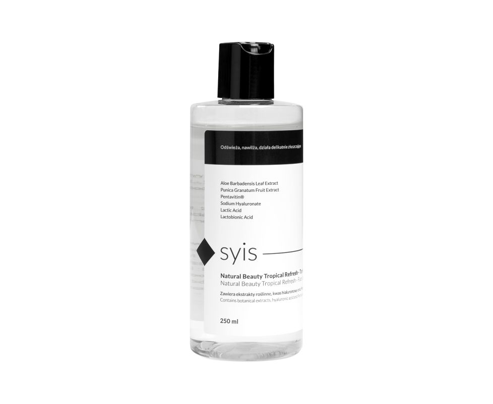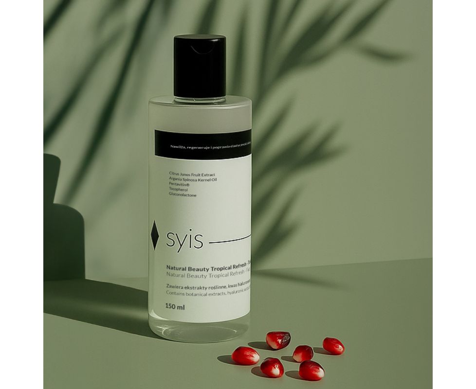 Syis Natural Beauty Tropical Refresh is a light, refreshing facial tonic that restores the skin's natural balance and provides an immediate feeling of comfort. Based on rose water and plant extracts, it soothes, tones and prepares the skin for further care. The formula contains 97% natural ingredients!