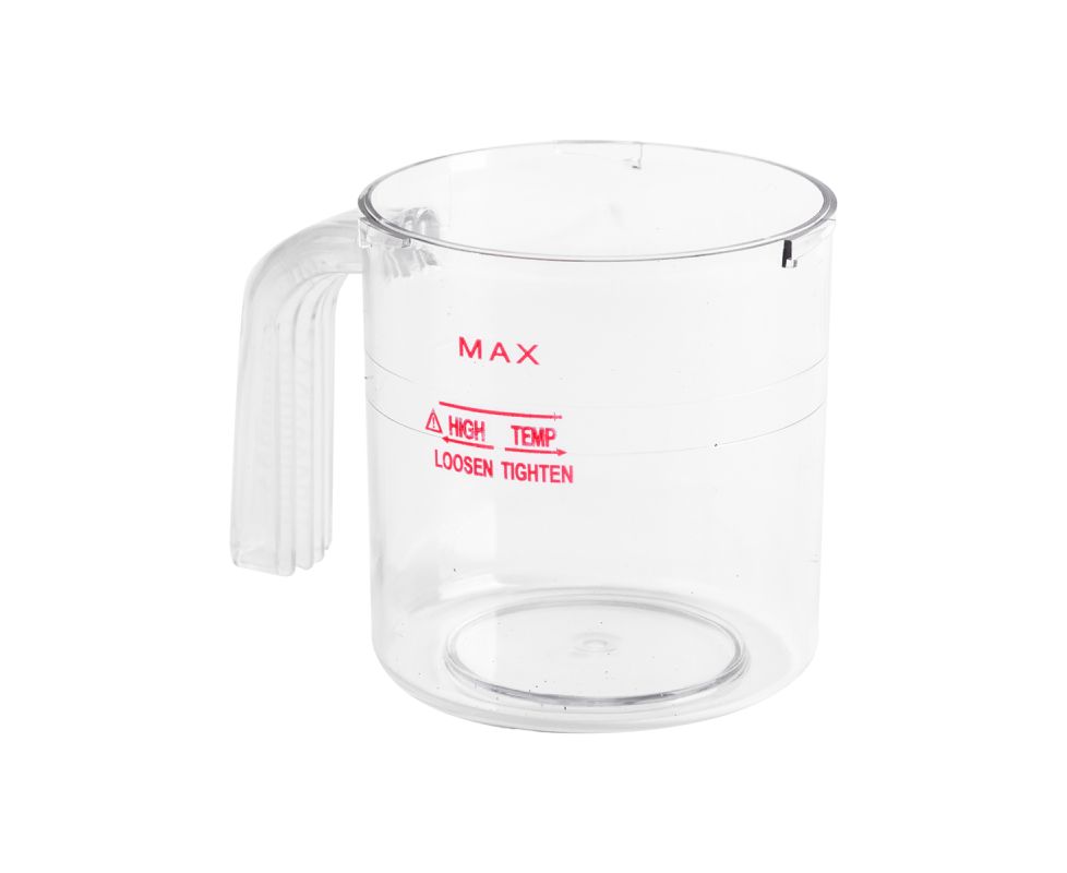 Replacement container made of transparent plastic, resistant to high temperatures. The glass has maximum water level markings for safe use. The lightweight design and smooth surface ensure easy cleaning. The replacement water container with handle has a diameter of +/- 9 cm and is suitable for Giovanni F-17 vapozones.