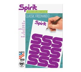 Spirit® Freehand Tattoo Transfer paper is the perfect choice for artists who demand premium materials. The unique wax blend ensures maximum control while freehand drawing designs. The bold purple dye stays visible on the skin, and the stencil paper is skin-safe and shelf-stable. Certified vegan....